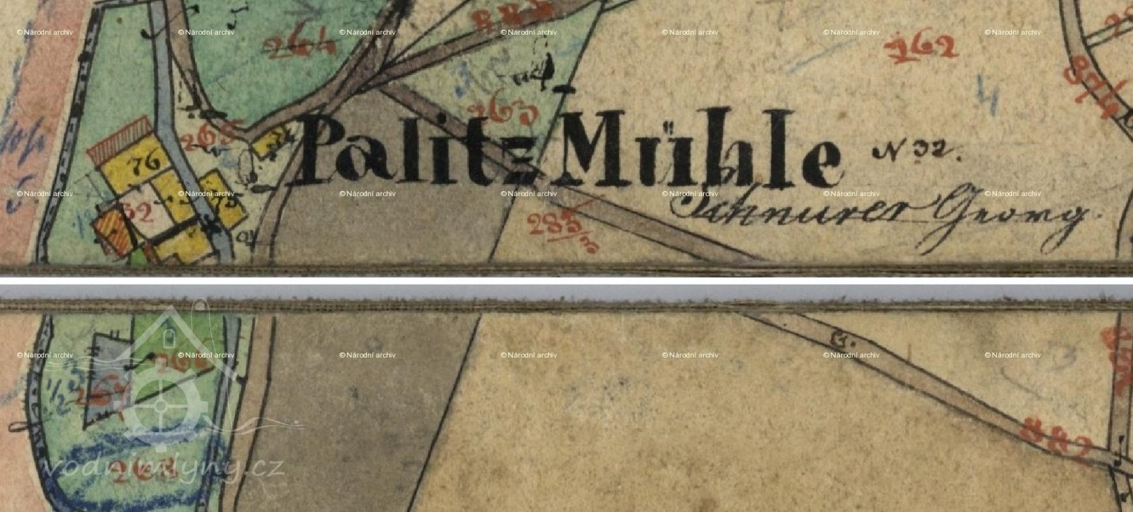 18. stol. - Paličský mlýn o 1 kole s pilou na nestálé vodě. Mlynář si stěžoval, že výše položené hamry zadržují vodu (Tereziánský katastr)