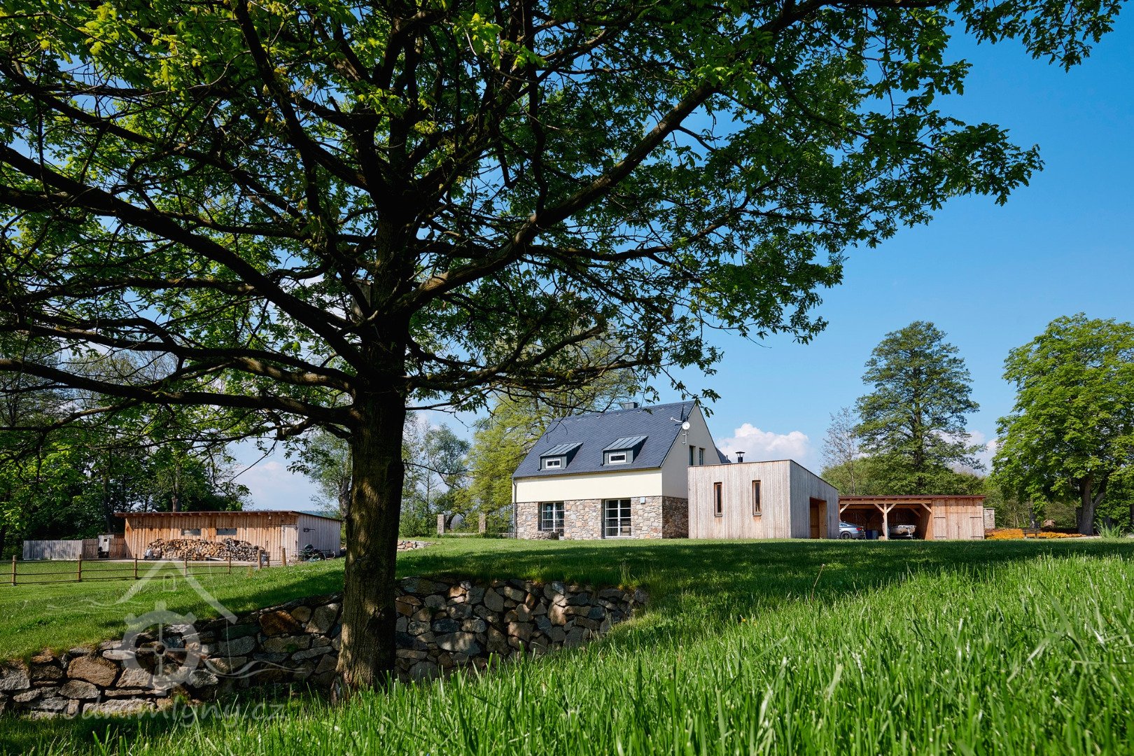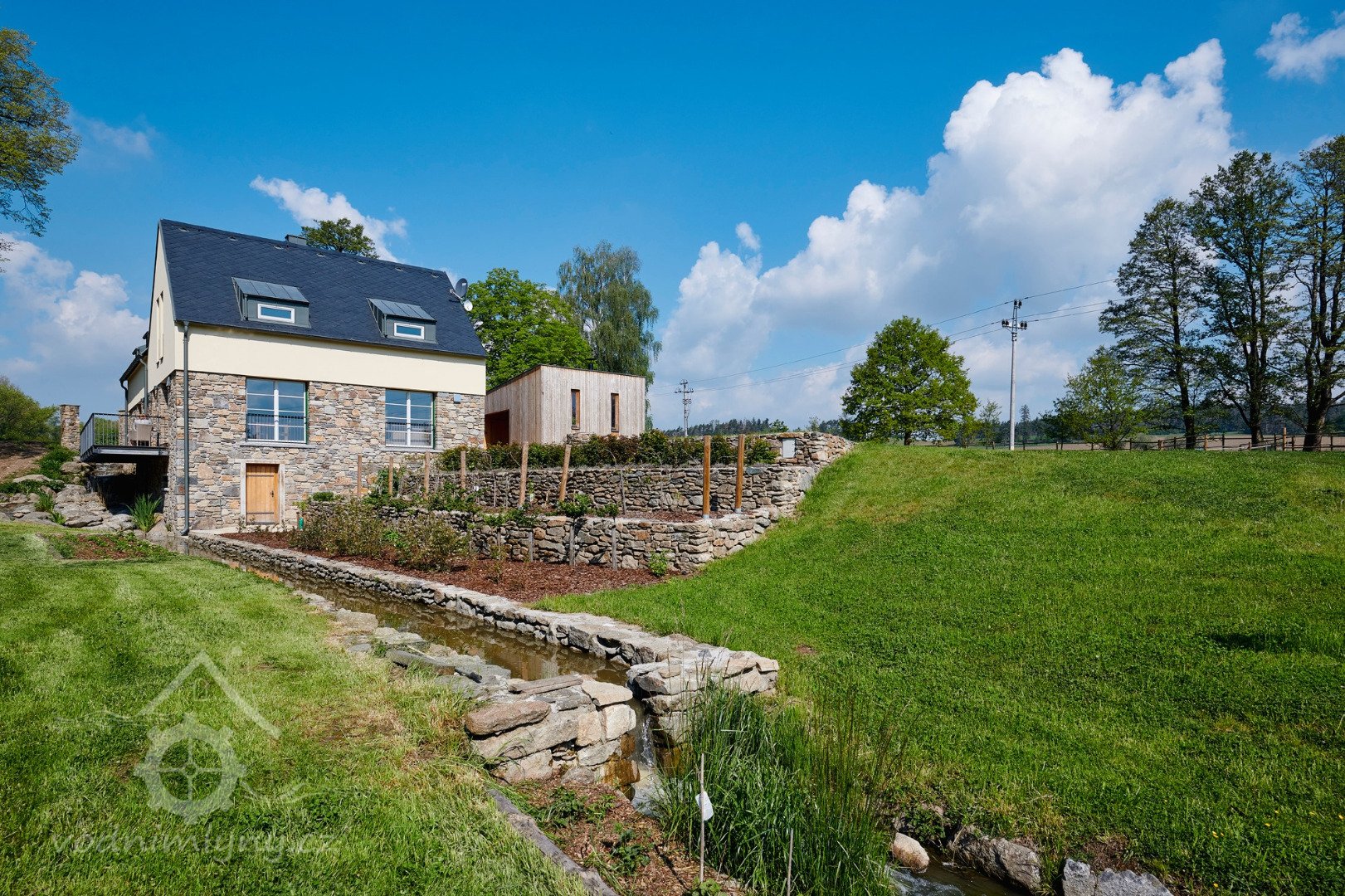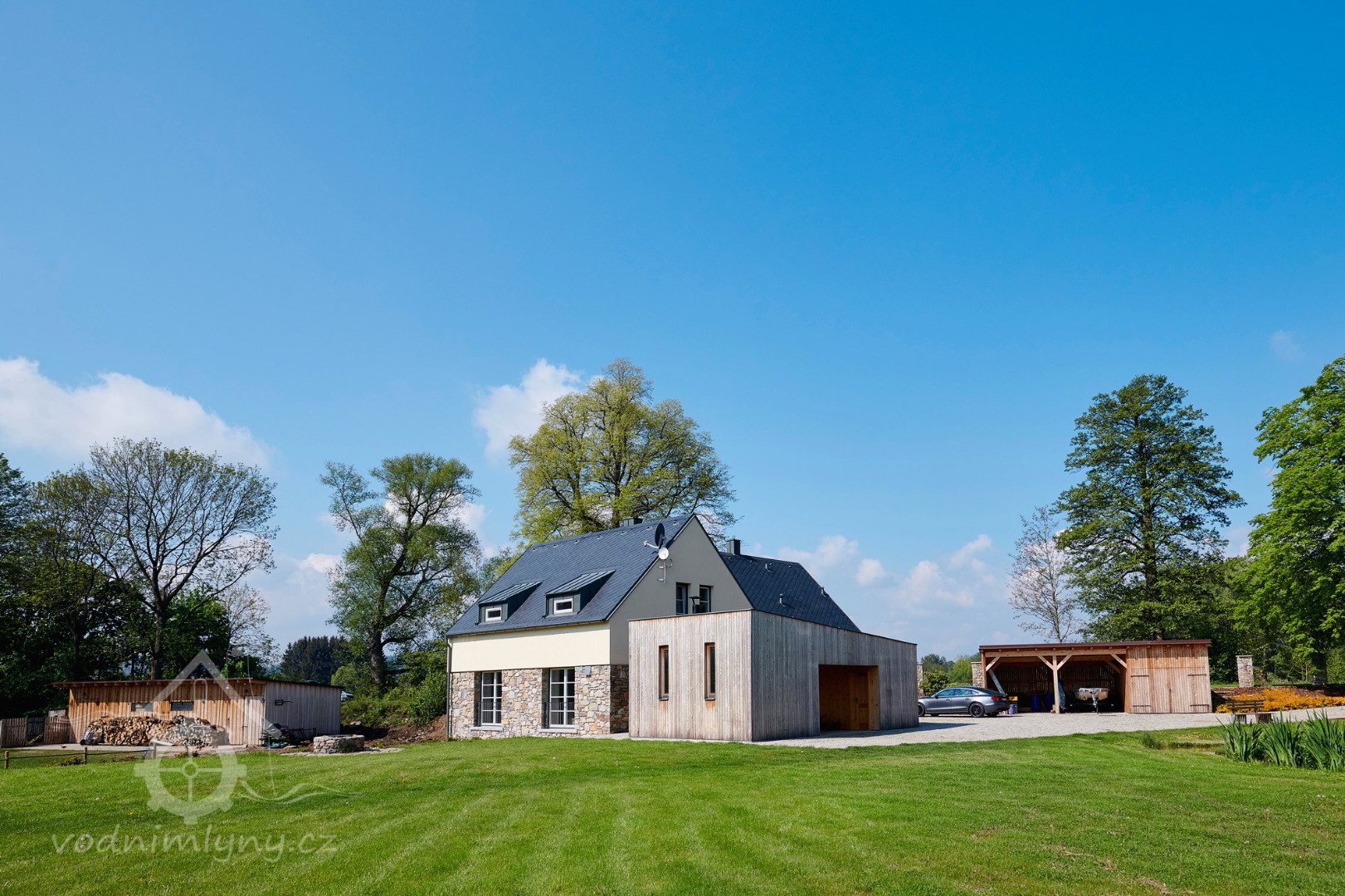 Původní vodní mlýn mezi Horažďovicemi a Malým Borem slouží po celkové rekonstrukci i s rozsáhlými okolními pozemky jako rodinný statek a penzion. Práce architekta provázely investora od úvodních definic záměrů až do detailů provedení interiérů.