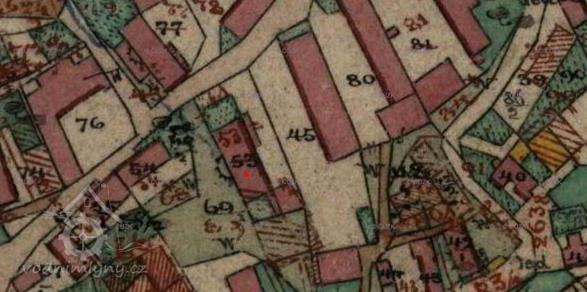 Pod mlýnem je další mlýn, č.p. 40, ke kterému byla voda přiváděna od tohoto mlýna.