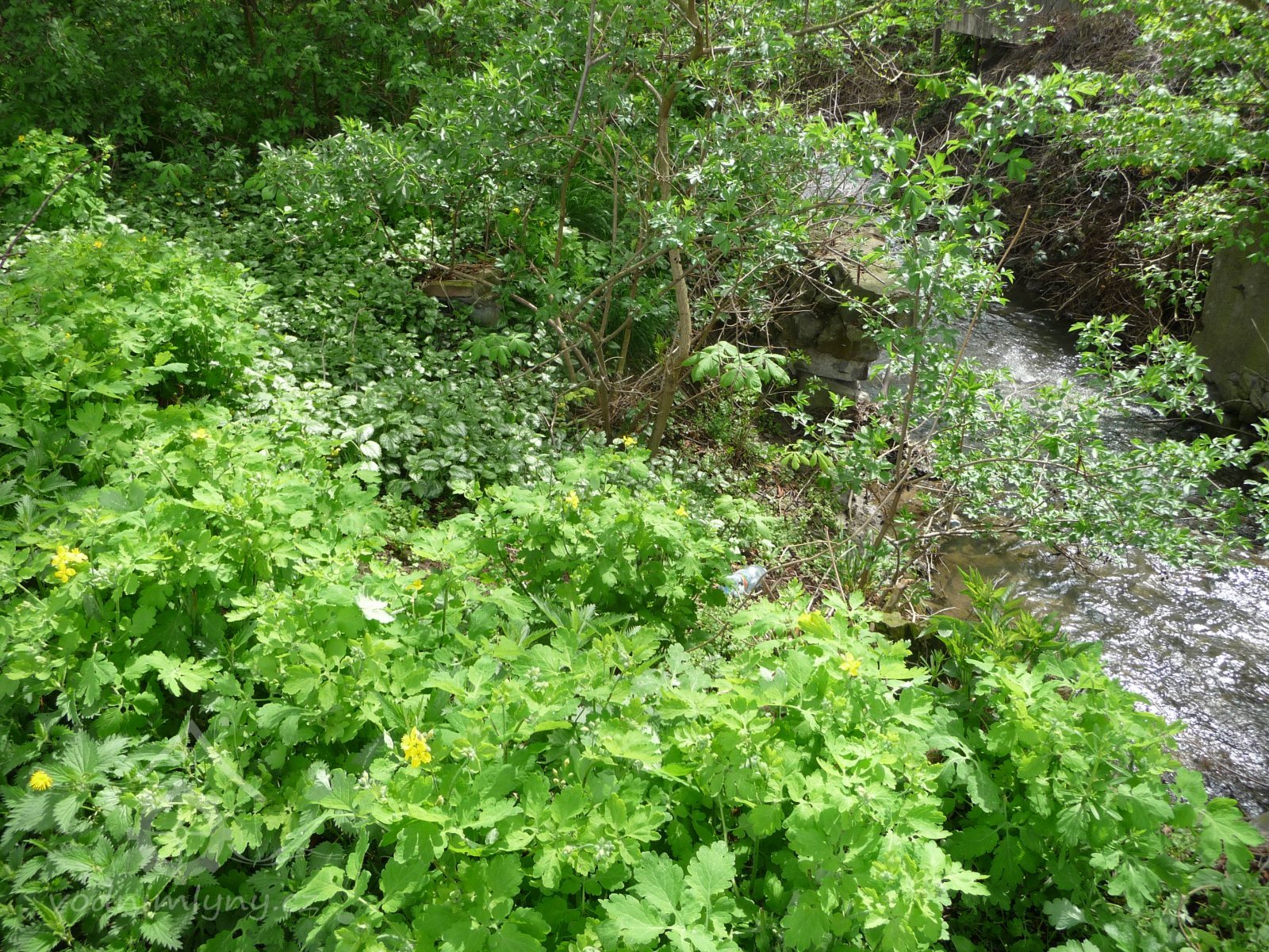 U potoka je patrné místo, kde se odděloval náhon nad menším splavem. Pokud je zachována cesta vody ke mlýnu, je na zarostlém oploceném pozemku.