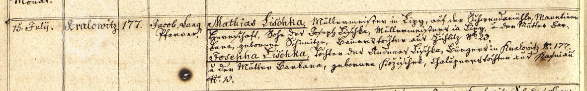 Okolo r. 1845 zde byl mlynář Mathias Lischka, syn ml. mistra Josefa Lischky z Lipí (RR).
