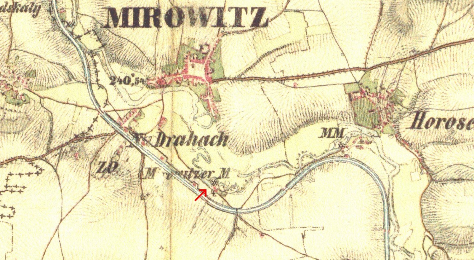(přejal) "... mlejn na stálej vodě v Mirovicích ležící s trojím složením, 3 stoupami, s vodotečí a stavidlama i s mlejnskými žlaby, s 2 kousky lučního po obou stranách potoka ležícíma, s 1 kusem pole podle silnice k Březnici vedle louky plíškovického sedláka Bidly a Košty v ceně 1300 zl. Mimo to ujal i pole pod Hradcem v ceně 700 zl..."