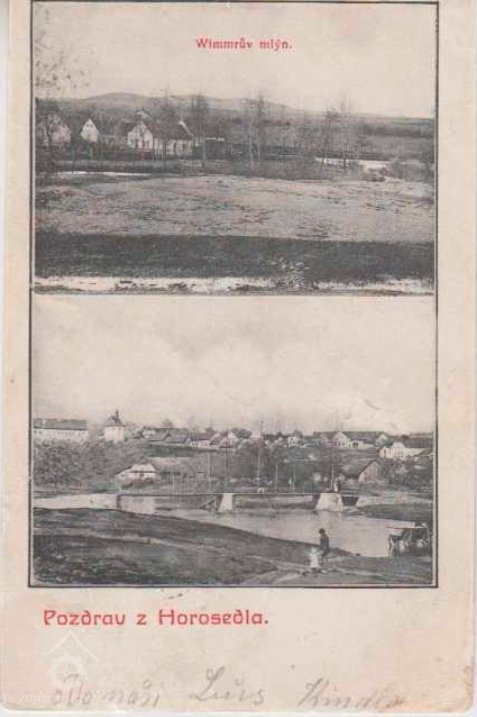23. prosince 1779 od horosedelské vrchnosti p. Jana Josefa Běšína z Běšin vykoupil panský mlýn se 2 žlaby, 2 stavidly, ale bez jezu, a s 26 str. polí za 400 zl. nájemce mlýna Vojtěch Jelínek. Ve mlýně povinni mlít poddaní z Horosedel a Touškova. Roční činže zůstává 54 zl. a 50 str. žita, ve žních 1 den roboty s 2 statnými ženci, povinnost mlít zdarma deputátní obilí, za což se mlynáři dostane 1/2 vědra sladu denně, jež si musí vlastním potahem z pivovaru odvézti. Opravy a rozšíření mlýna smí provádět jen s povolením vrchnosti, k čemuž se vrchnost zavazuje přispívat ročně 6 kmeny borovými, 6 kmeny dubovými a 1 pecí vápna. Mlynář si smí v panském lomu sám nalámat potřebný kámen. Opravy nezakládají nárok slevy na daních a činži. V případě prodeje nebo postupu musí být vyžádáno vrchnostenské povolení. Za náležitý obrok přislibuje vrchnost robotní potahy na různá potřebná svážení ku mlýnu. Kdyby kupující neplnil stanovené povinnosti, může být po vrácení peněz z mlýna vypuzen a vypovězen.