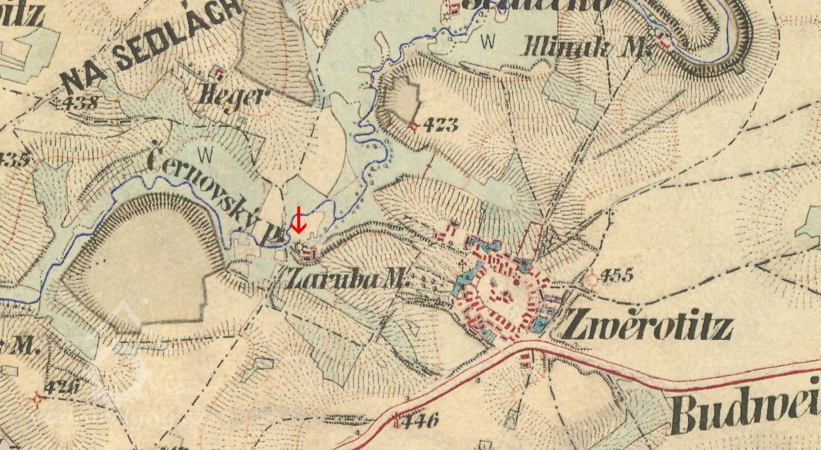 Zvěrotice, Černovický potok, mlýn čp.32 „Zárubův“