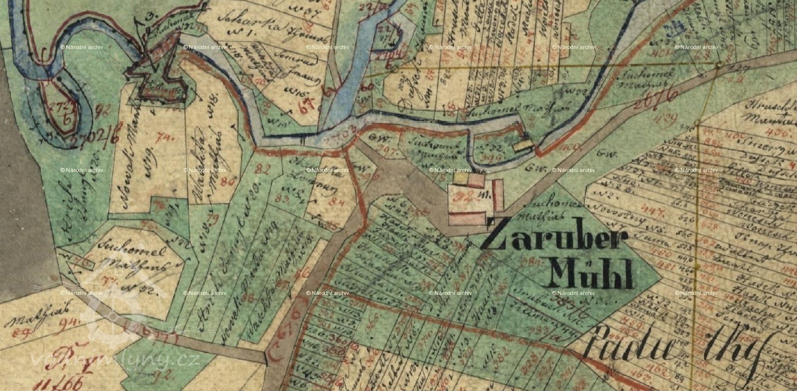 Mlýn je matrikami připomínán v první polovině 17. století. Budovy Zárubova mlýna jsou nyní přímo mezi dálnicí D3 a železničním koridorem tratě z Prahy do Českých Budějovic a postupně jsou novým majitelem opravovány. Mlýnský náhon od Černovického potoka není po výstavbě dálnice v terénu zřetelný.