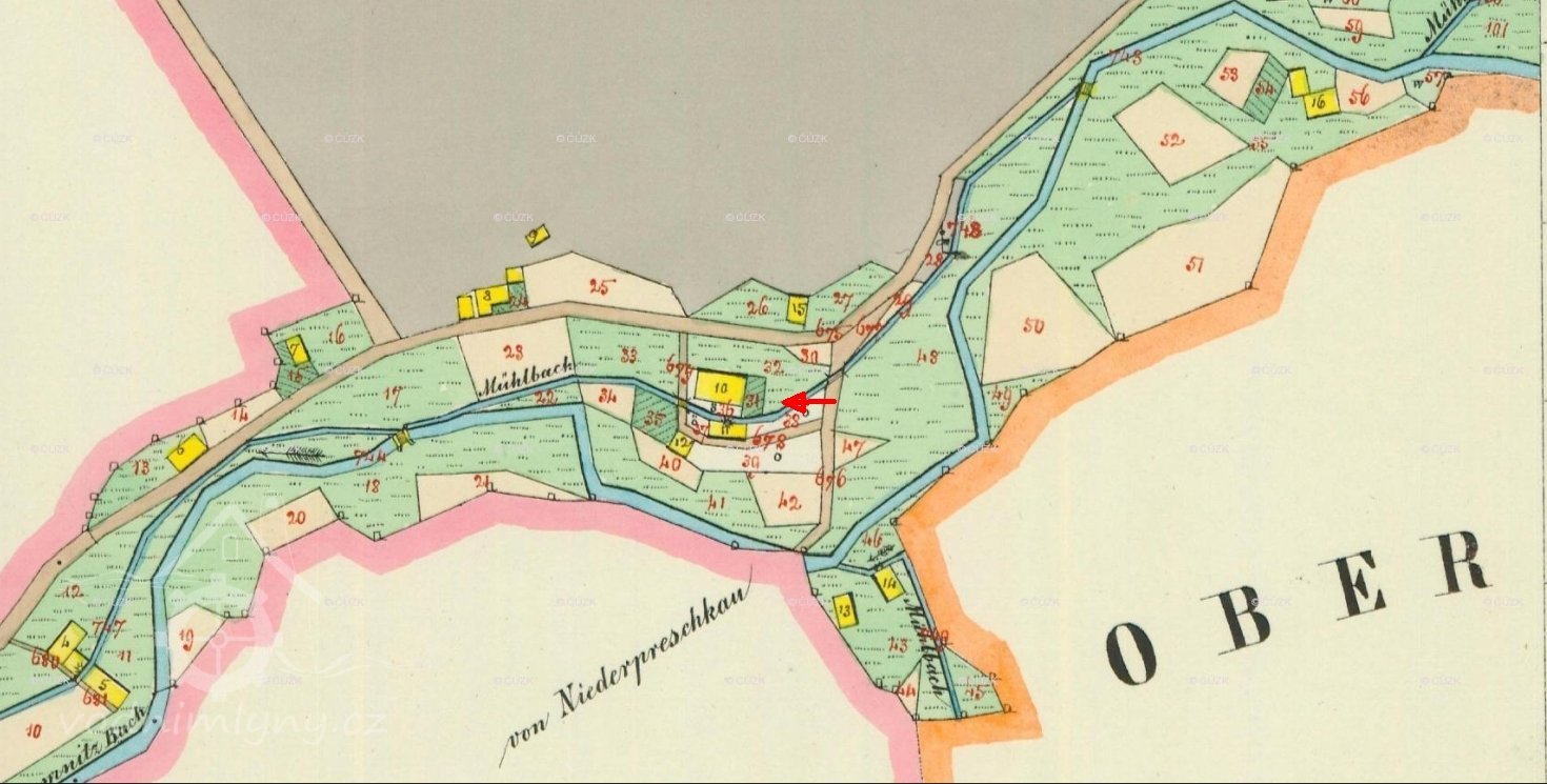 Na císařských otiscích stabilního katastru a indikační skice je nedaleko mlýna za železniční tratí zakreslen další malý objekt s vodním kolem na bezejmenném přítoku Kamenice. V místě uváděném na mapě je vzrostlý les.