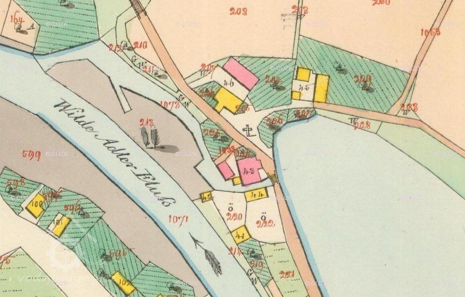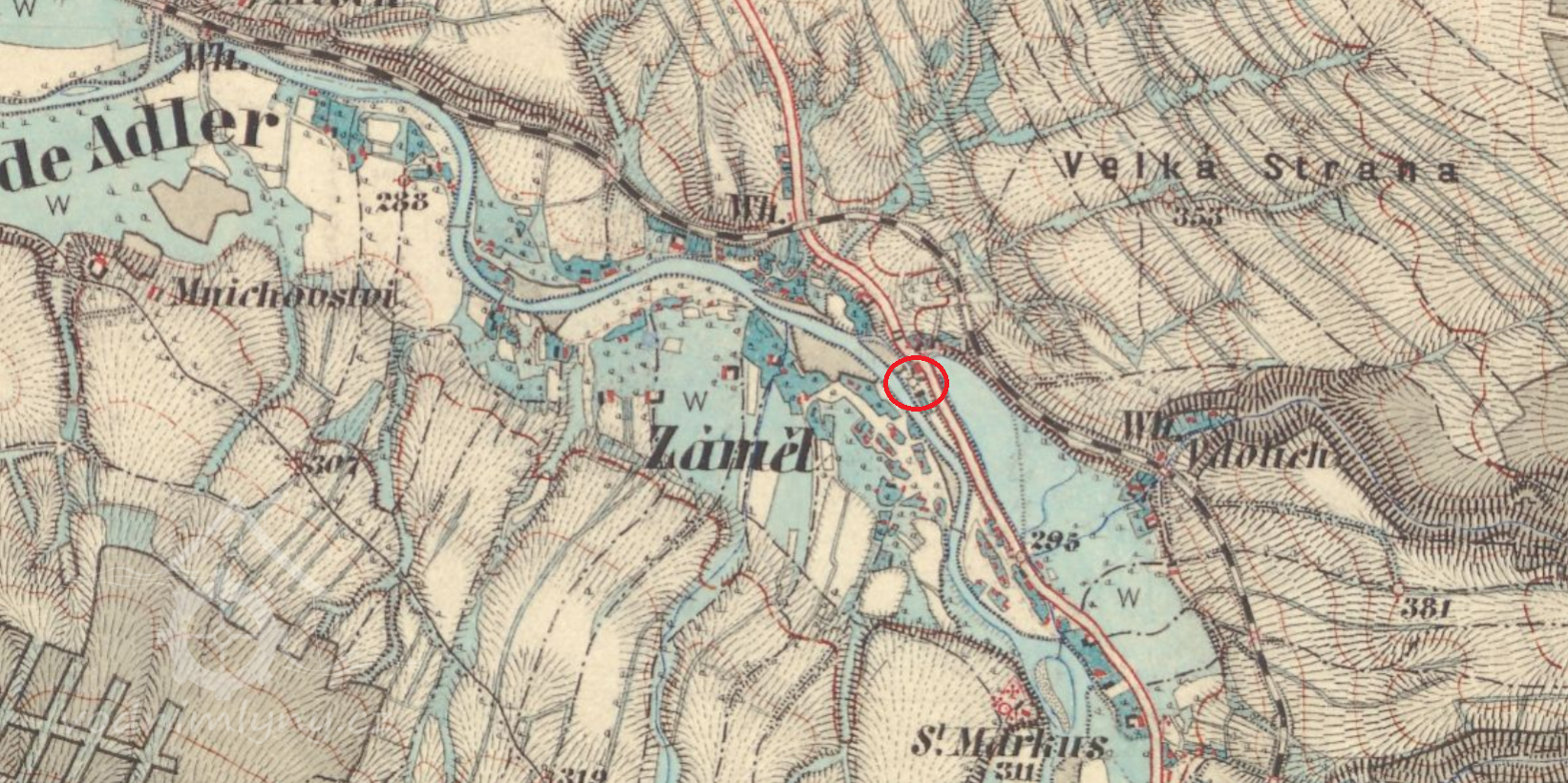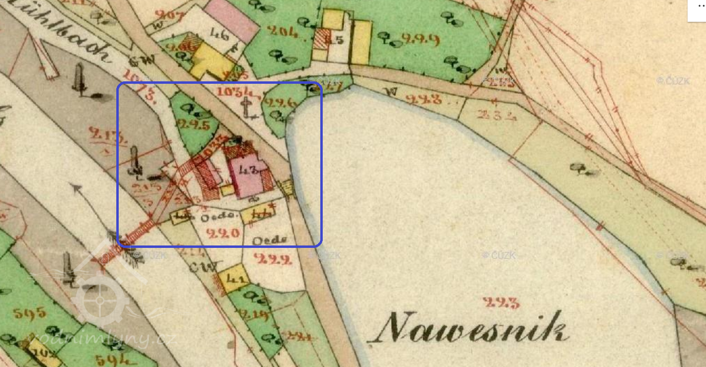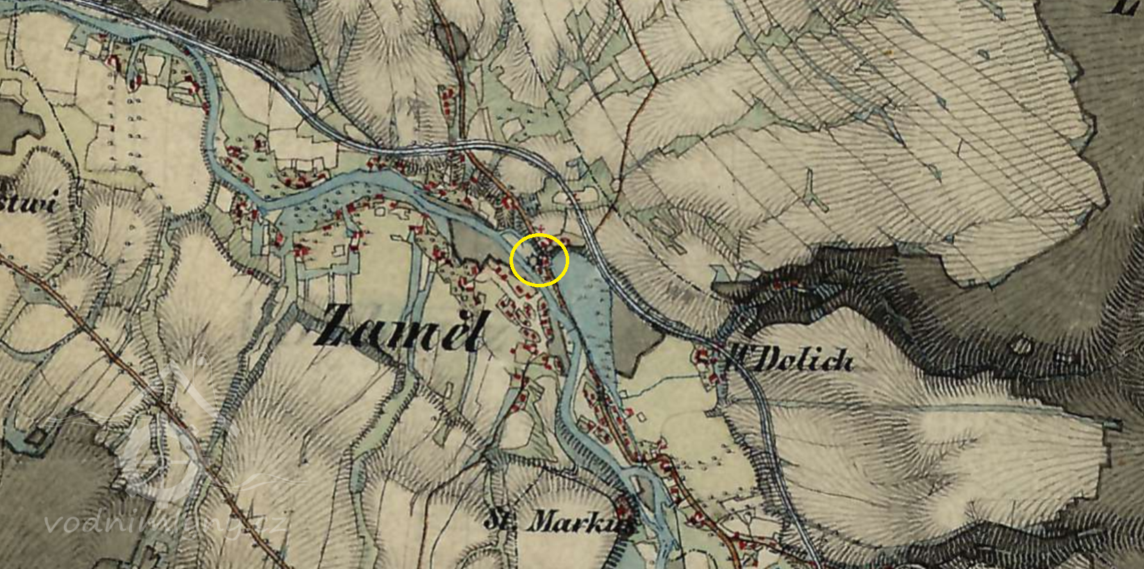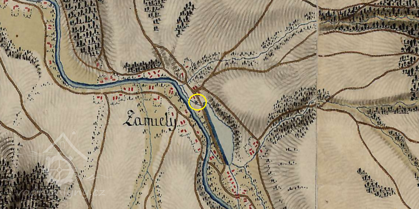 PopisV r. 1930 zde byla Francisova turbína, průtok 0,885 m3/s, spád 3,75 m, výkon 31,9 k.