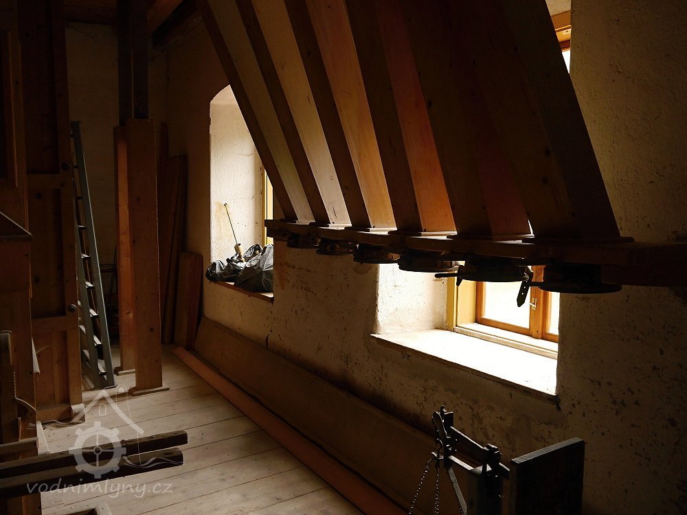 Udržovaný areál mlýna se stále provozuschopnou turbínou