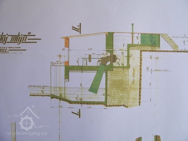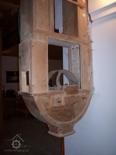 V dokladech z devatenáctého století se dozvíme, že tehdy bylo v mlýně pět vodních kol. Každé z nich pohánělo jeden stroj. Byly zde dvě mlýnské stolice, jednolistová pila, šindelka a krupník. Když bylo potřeba spustit určitý stroj, pustila se voda na to kolo, s nímž byl spojen. V roce 1901 proběhla velká rekonstrukce a modernizace. Dosavadních pět kol bylo nahrazeno dvěma většími a ve sklepě mlýnice byla instalována asi 30 metrů dlouhá transmise, kterou kola společně roztáčena. Z ní se síla vody přenášela na jednotlivé stroje pomocí kožených řemenů, které se podle potřeby využití strojů buď nahazovaly nebo sundavaly. Transmise mohla pohánět také důmyslné kapsové dopravníky, což byly dlouhé svislé textilní pásy s plechovými kapsičkami, které dopravovaly zrní nebo mouku do zásobníků v podkroví. Transmise i dopravníky se dochovaly dodnes.