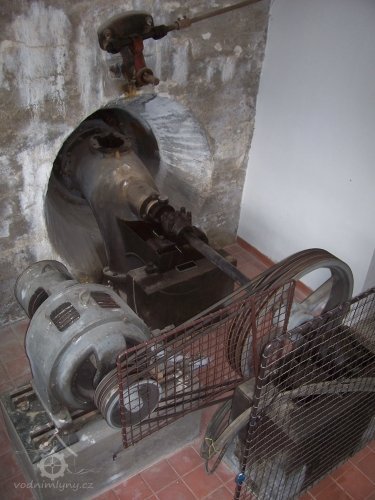 K radikální změně došlo v roce 1921. Dosluhující vodní kola byla nahrazena Francisovou turbínou. Musel být vybudován nový náhon z rybníka, turbínová kašna, strojovna turbíny, dvě stavidla a zregulován odpadní kanál. Síla vody se pak přenášela na dosavadní transmisi širokým řemenem a z ní na jednotlivé stroje. Výkon turbíny, která funguje dodnes, je při spádu 5,1 metru a spotřebě půl kubíku vody 32,5 koňských sil. Oproti vodním kolům šlo nepochybně o velký nárůst. Turbína byla vyrobena firmou Breitfeld Daněk a spol. v Blansku. Celý projekt stavby, včetně stavebního povolení i kolaudace, se tehdy vešel na jeden list papíru o velikosti asi 80 x 120 cm. Těžko si představit kolik papírů by na podobnou stavbu bylo potřeba dnes. Tento dokument se dochoval a jeho kopie je vystavena v mlýnici.