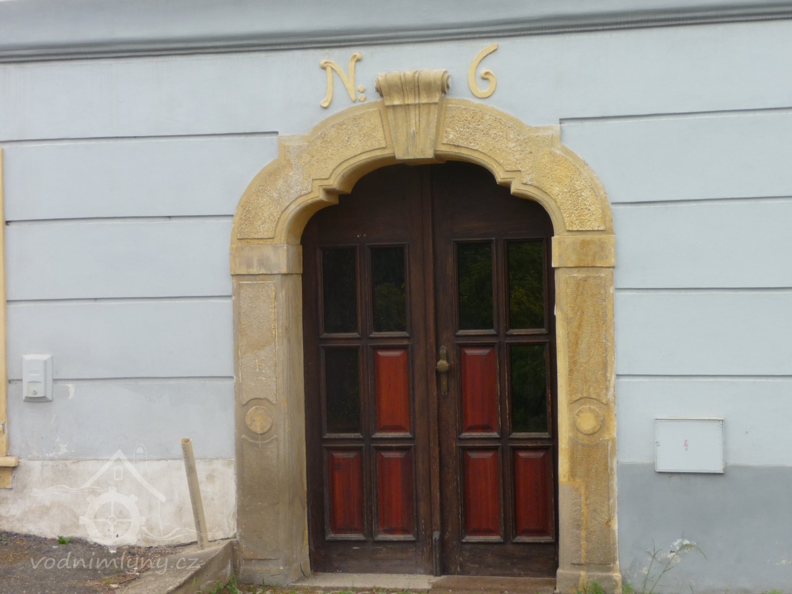 Portál mlýna, 01 2023, © Vojtěch Klimt, (Prvky na obrázku: dveře, kamenické prvky barokní a mladší)
