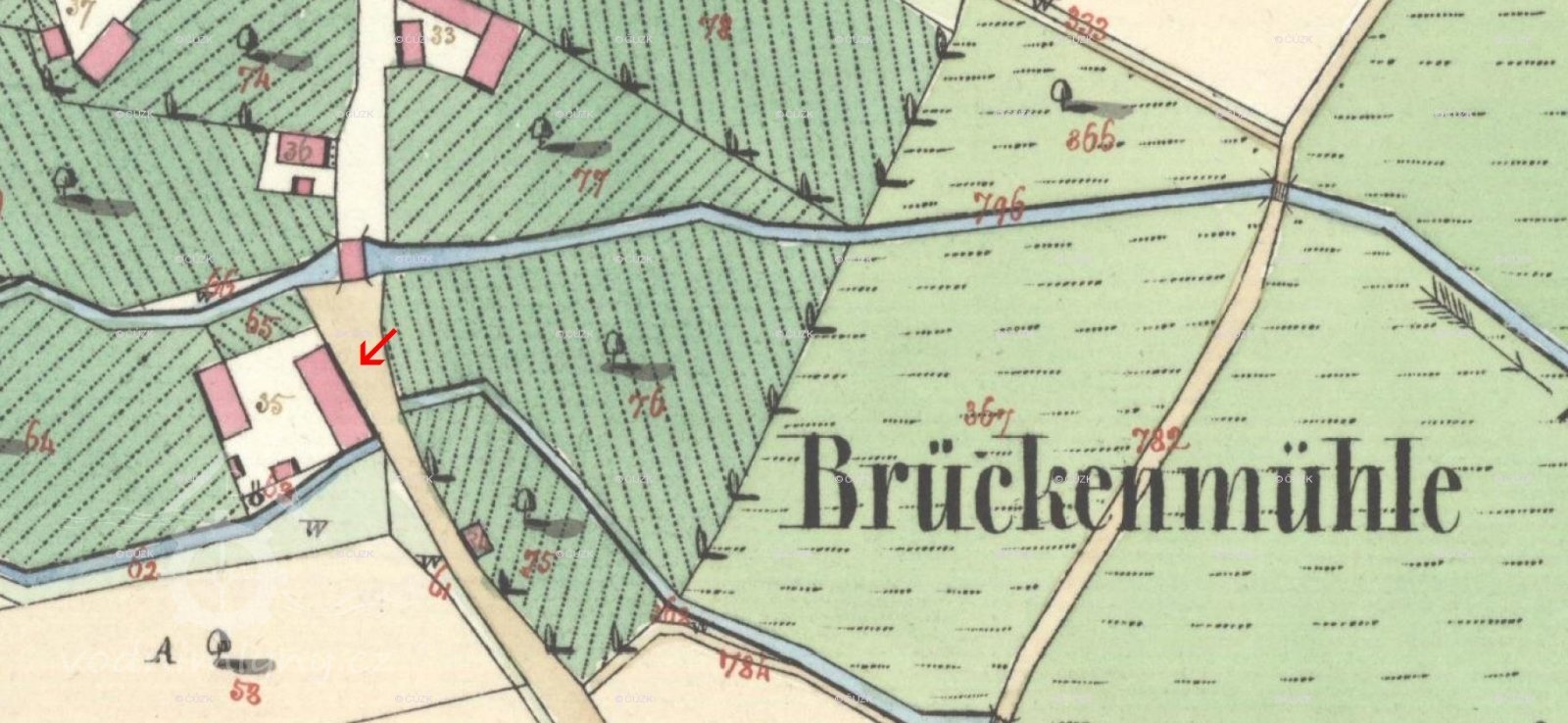Indikační skica, výřez, 1843, © viz archivnimapy.cuzk.cz