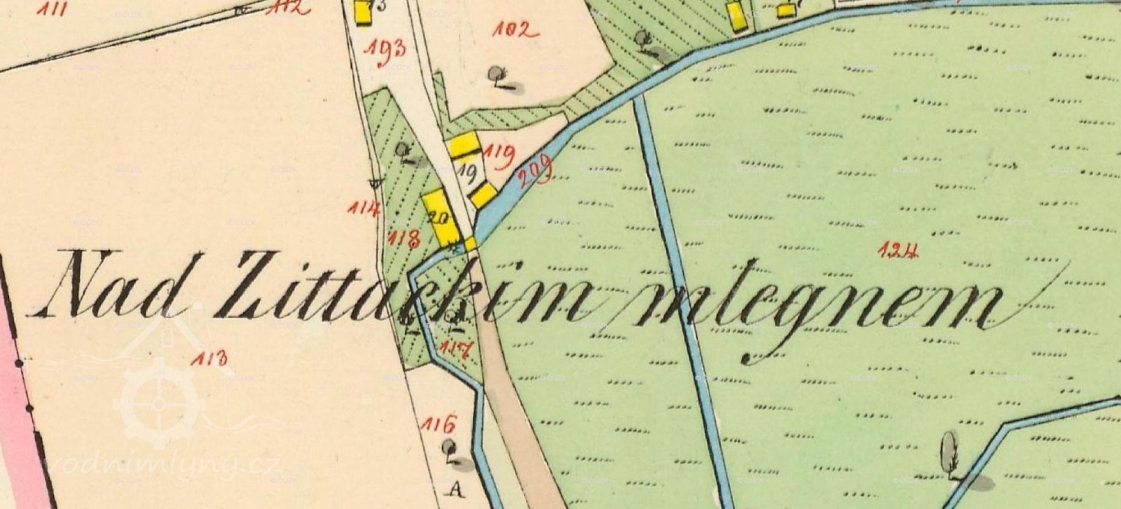 PopisV roce 1930 měl mlýn 1 kolo na vrchní vodu, hltnost 0,1735 m3/s, spád 3m, výkon 4,5 HP.