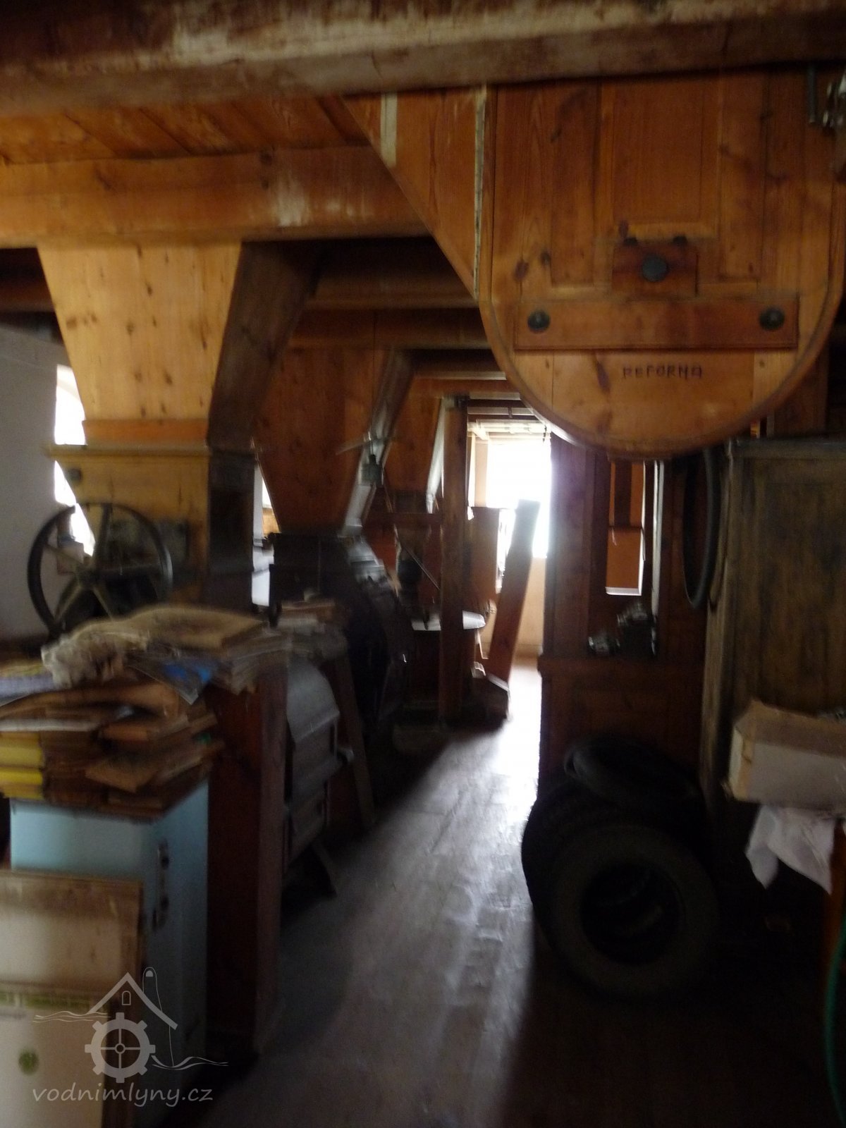 V mlýnici uloženy mlecí kameny.
