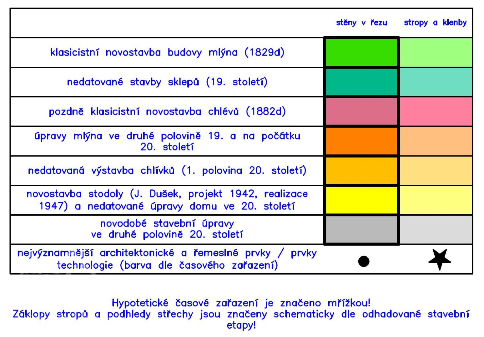 Poslední stavební fáze může pocházet z roku 1829 (datování mlýnské hranice)