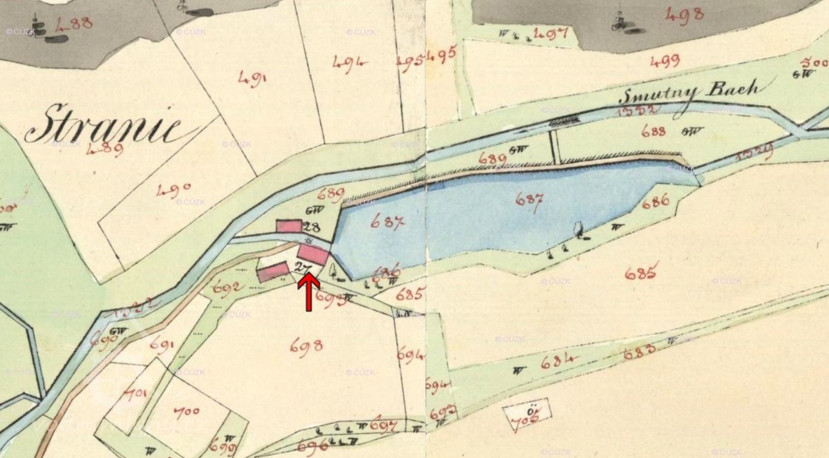 29. března 1772 se stal majitelem chalupy (mlýn zde tehdy nebyl) mlynář Václav Cmunt, „poněvadž předešlý hospodář neb držitel tý chalupy Jan Zrubský předně na grunt schopný uznán jsa, za druhý skrze všeliké války a nesvornosti s svým sousedem mlynářem jakož skrze jeden druhému s dobytkem a drůbeží činění škody a jeden druhého proklínání, měla sice vejš jmenovaná chalupa k rasírování přijíti, nic však méně aby předešlý hospodář žádnou škodu netrpěl, tak se taková prošacovala a vejš jmenovanému Václavovi Cmuntovi z moci kanceláře za sumu trhovou 30 kop míšeňskejch prodala“
