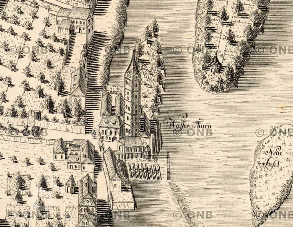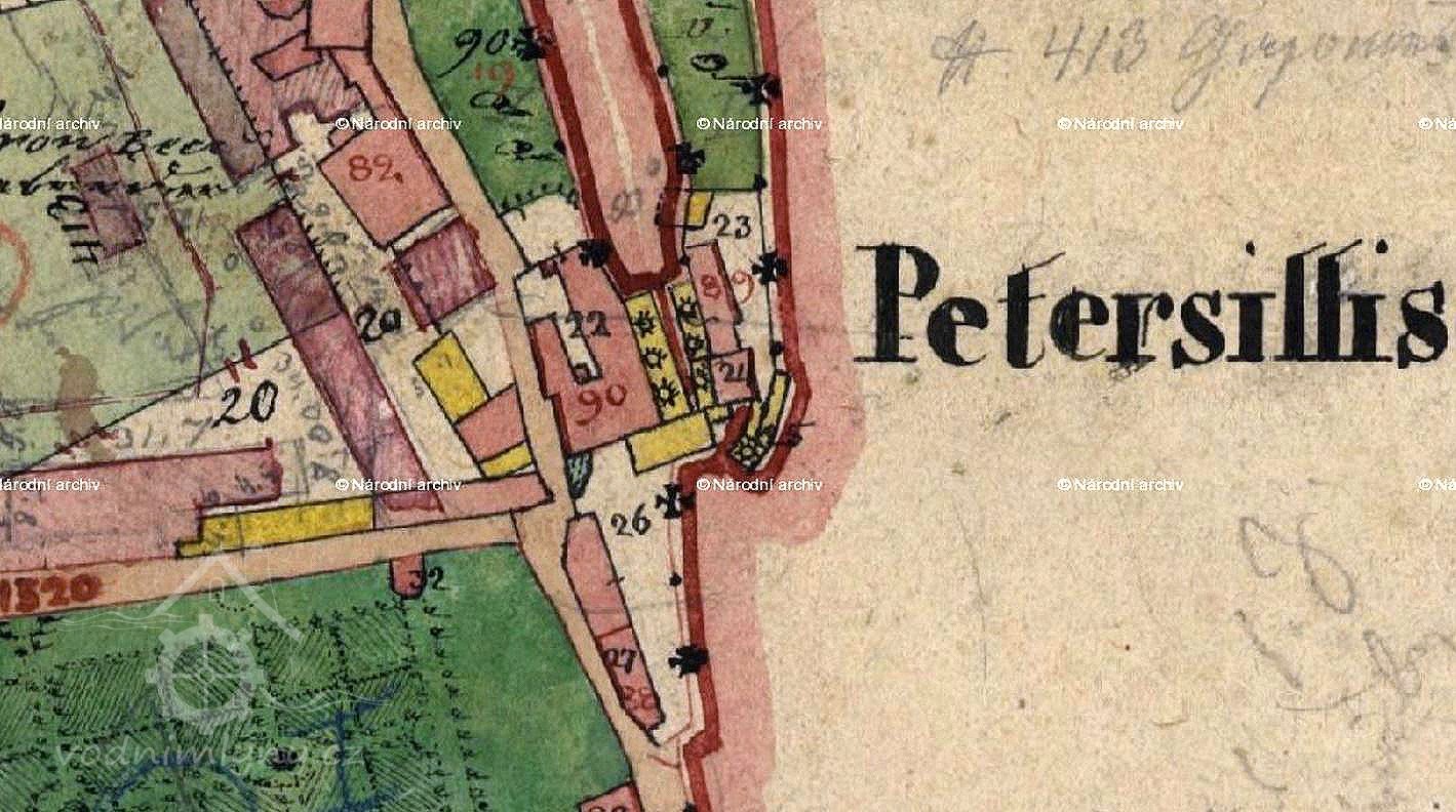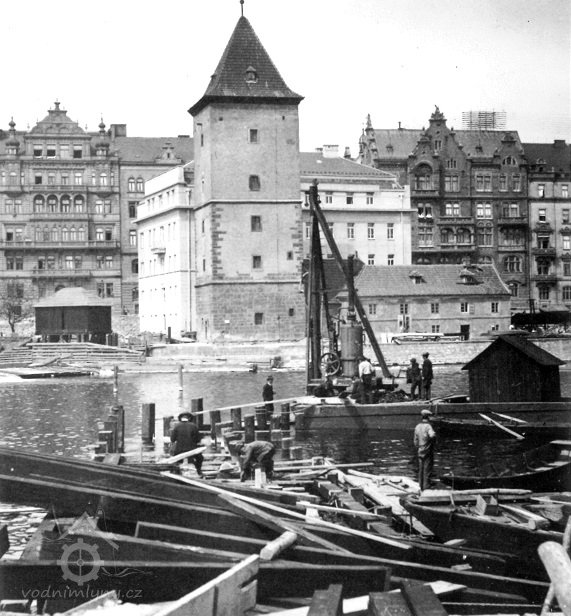 1483 – pražská obec povolila mlynáři a pekaři Janu Petržílkovi postavit při Jezuitském ostrově (dnes Petržilkovský) na Vltavě u smíchovského břehu „na místě spáleného mlýna mlýn nový“. Vedle mlýna postavila obec dřevěnou vodárnu, která byla umístěna vně hradeb Malé Strany.