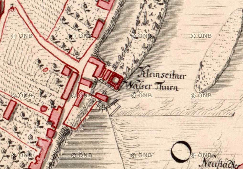 Od nového majitele jej pak koupila malostranská obec, která mezi lety 1582 a 1596 vystavěla poblíž zděnou vodárenskou věž s čp. 89. Ve věži pak dal roku 1629 postavit Albrecht Valdštejna nový stroj s podmínkou, že bude bezplatně zásobovat vodou jeho palác na Malé Straně. Roku 1686 napájelo pět padacích dřevěných řadů (vodovodů) celkem 57 kašen a stojanů.