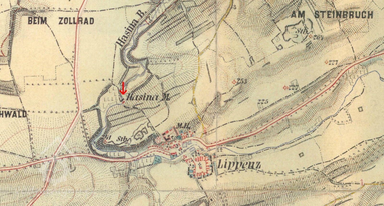 Majitelem mlýna byl němec Alois Pischoft, ale jeho hlavním správcem a také správcem přilehlého hospodářství byl až do roku 1945 Ervin Makowitz, lidmi přezdívaný Makovec. U mlýna stávala také pekárna (Schwarzbackerei), která zásobovala široké okolí čerstvým pečivem. V dobách první republiky mlýn zaměstnával velké množství pracovníků. Zlom nastal až ve 30. letech, kdy několik požárů zničilo vybavení mlýna a pekárny takovým způsobem, že zde veškerá činnost ustala.Lidé na minulou podobu údolí rádi vzpomínají. Nejen na mlýn a výborné pečivo z jeho pekárny nebo na rozkvetlé ovocné stromy, ale také na záplavu hlaváčků jarních, které svou žlutí každým rokem rozzářily stráně za mlýnem po proudu potoka Hasiny, nebo na různé zábavné akce, které se v údolí uskutečnily. V části údolí blíže Lipenci se prý odehrávala představení ochotnického divadla. Např. na inscenaci hry Maryša bratří Mrštíků se podílela téměř celá vesnice pod vedením učitelů lipenecké školy.