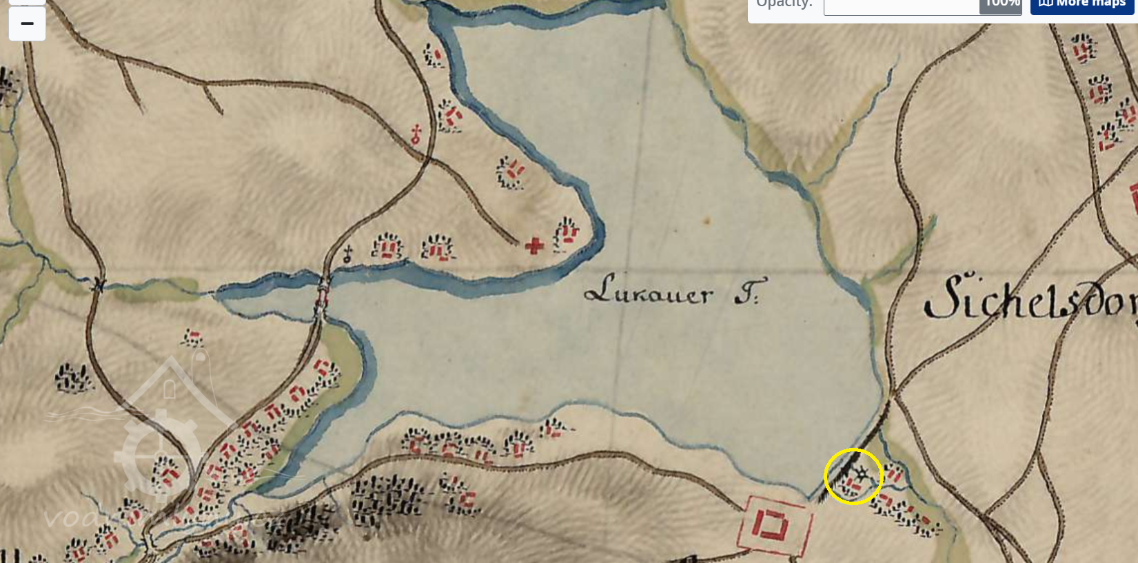 Velký Lukovský rybník nad mlýnem, vypuštěn a zrušen na poč. 19. stol.
