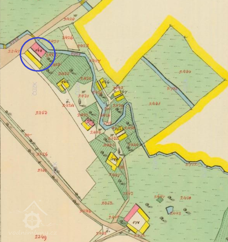 Popis1930: 2 kola na svrchní vodu, hltnost 0,173 m3/s, spád 4 m, výkon 6 HP