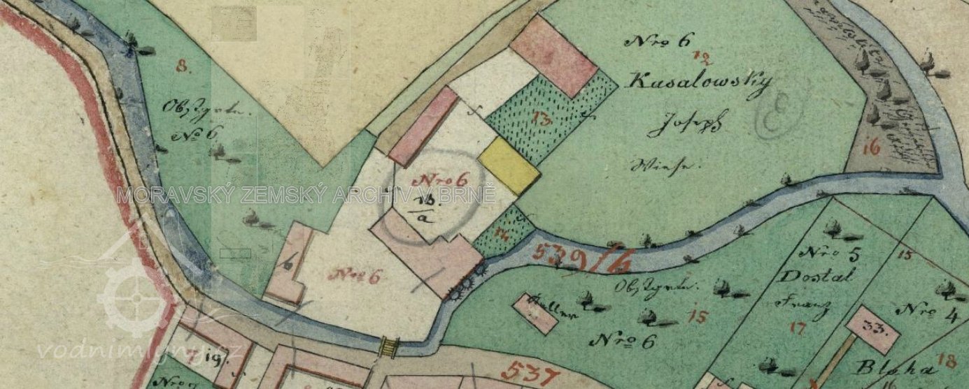 Popis1930: 1 kolo na svrchní vodu, hltnost 0,24 m3/s, spád 3,4 m, výkon 7 HP