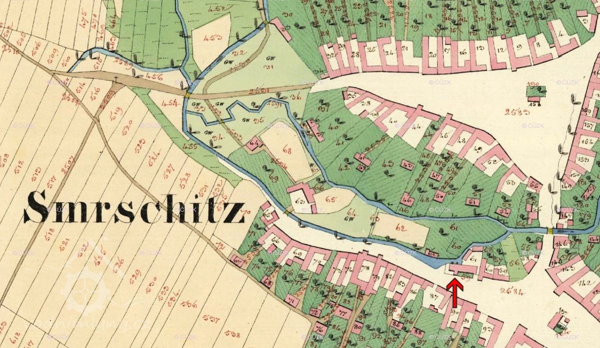 Smržice, mlýn a olejna na Kobližnici, č. p. 6, původní č. p. 34 a 43
