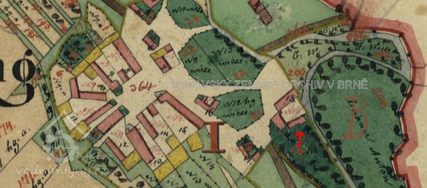 Popis1930: 1 kolo na spodní vodu, hltnost 0,569 m3/s, spád 1,55 m, výkon 5,5 HP