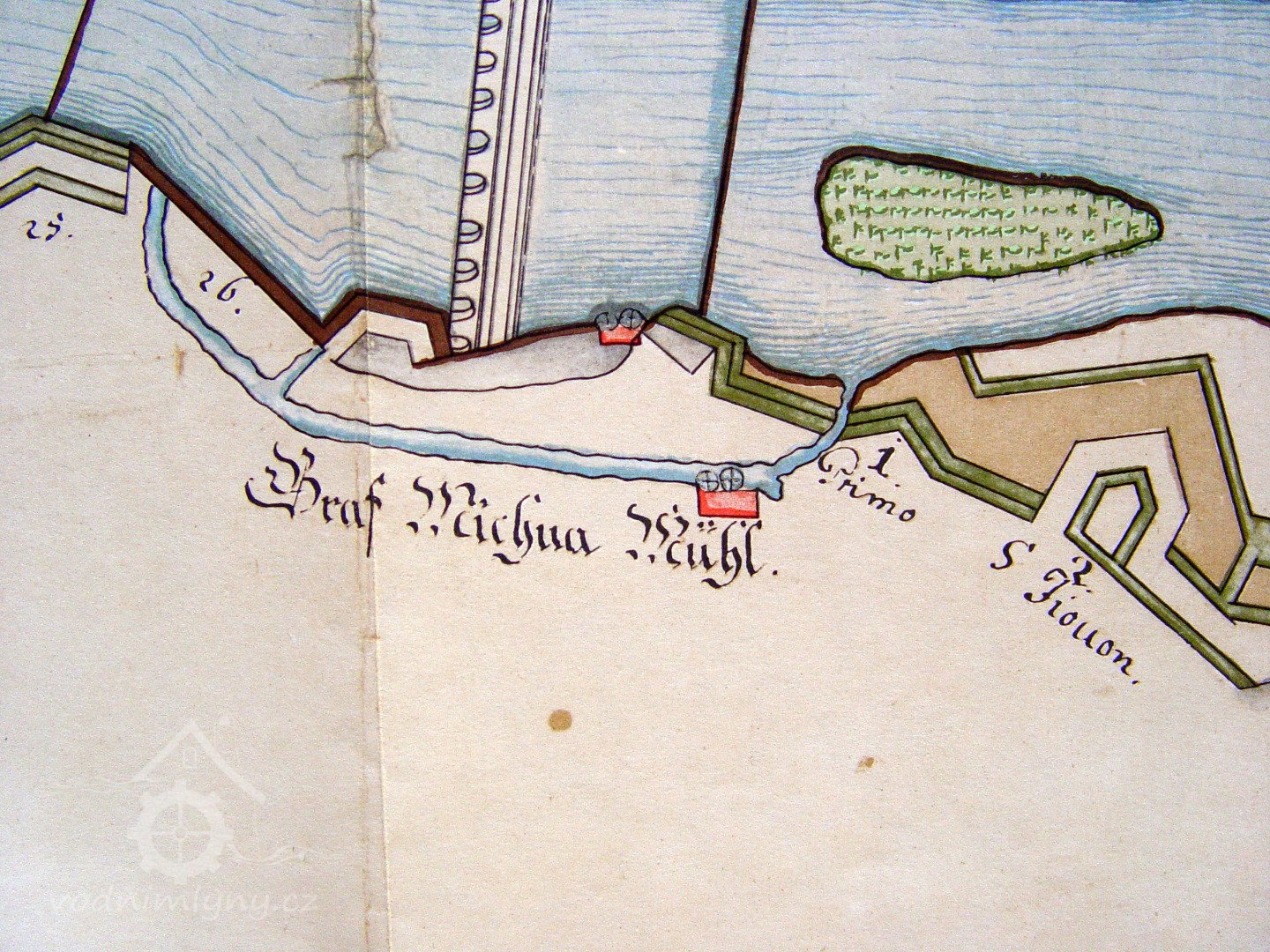 Plán malostranského vodovodu, výřez, 1685, © Archiv Jindřichohradeckého zámku