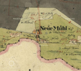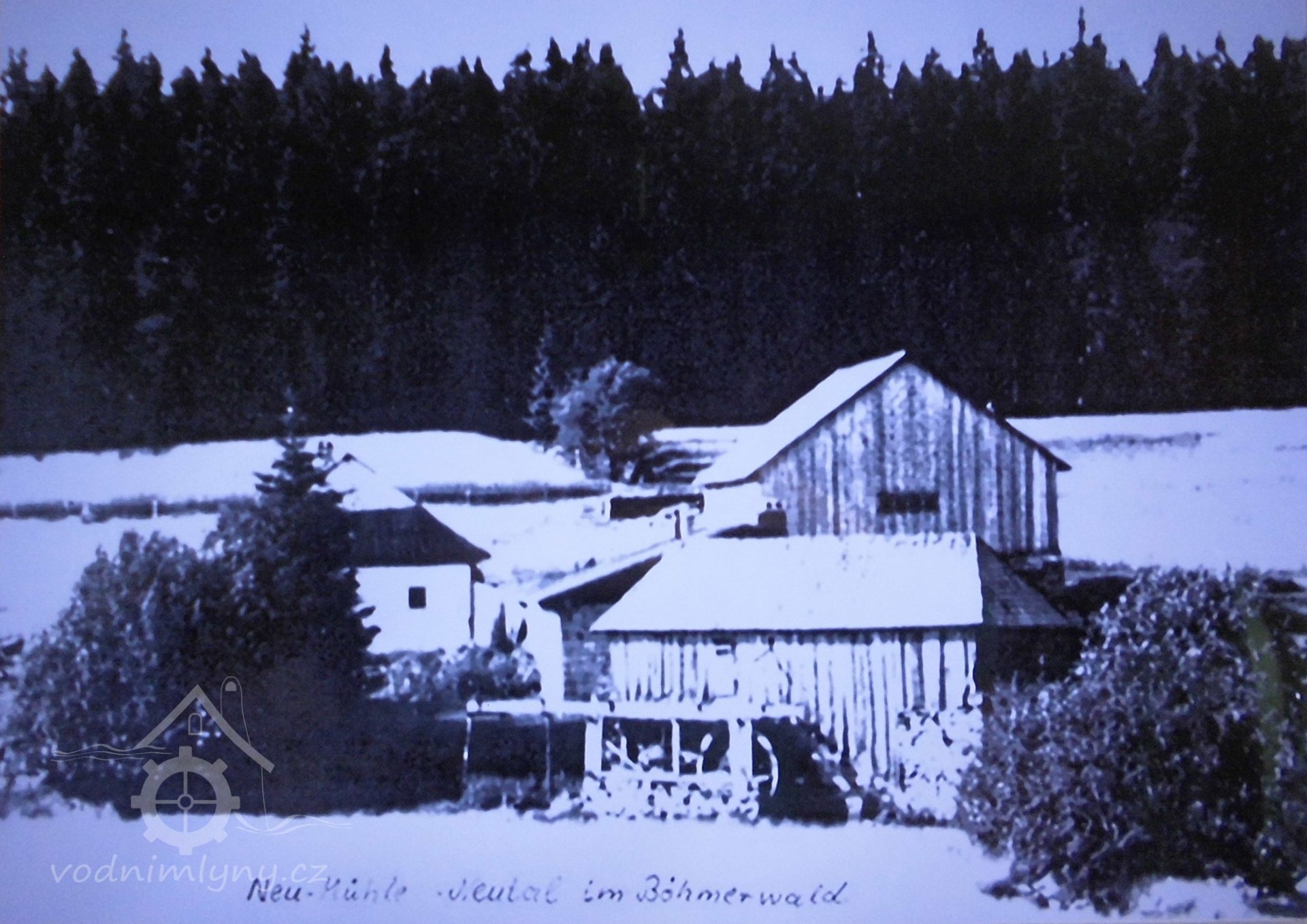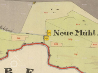 Samota Nový mlýn se nacházela v katastrálním území České Žleby.Označována byla i jako:"Neumühle NC.36 in Schönberg".Šlo o dva objekty:mlýn a obytné stavení měl čp.36 a obytný dům měl původně označení čp. 36b,později 56.Nemovitosti jsou zobrazeny na mapě Stabilního katastru:Čechy-0979-1-České Žleby.Na starší mapě/map.list 043/ mají stav.parcely číslo 95/mlýn/ a 94/obyt.dům.Na novější mapě /map.list 042/ má mlýn číslo st.p.686 a obytný dům st.p.687.