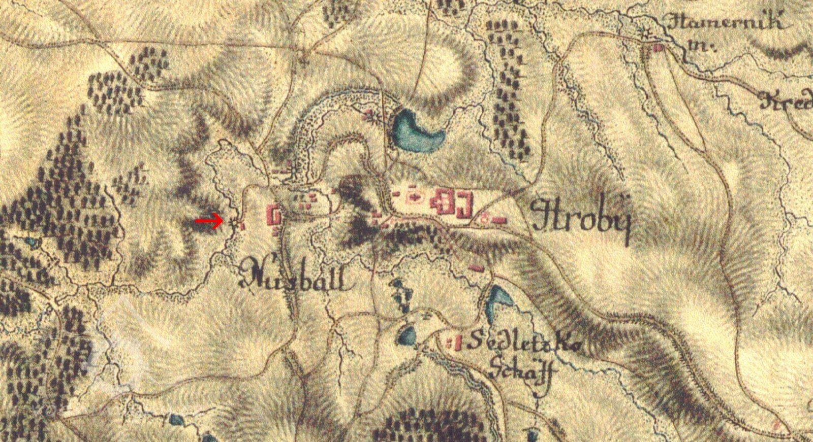 Jihozápadně od obce Lažany