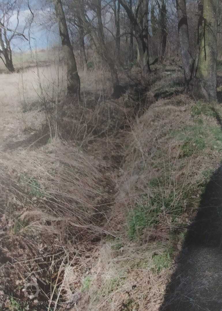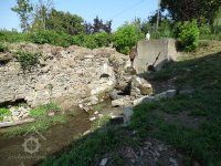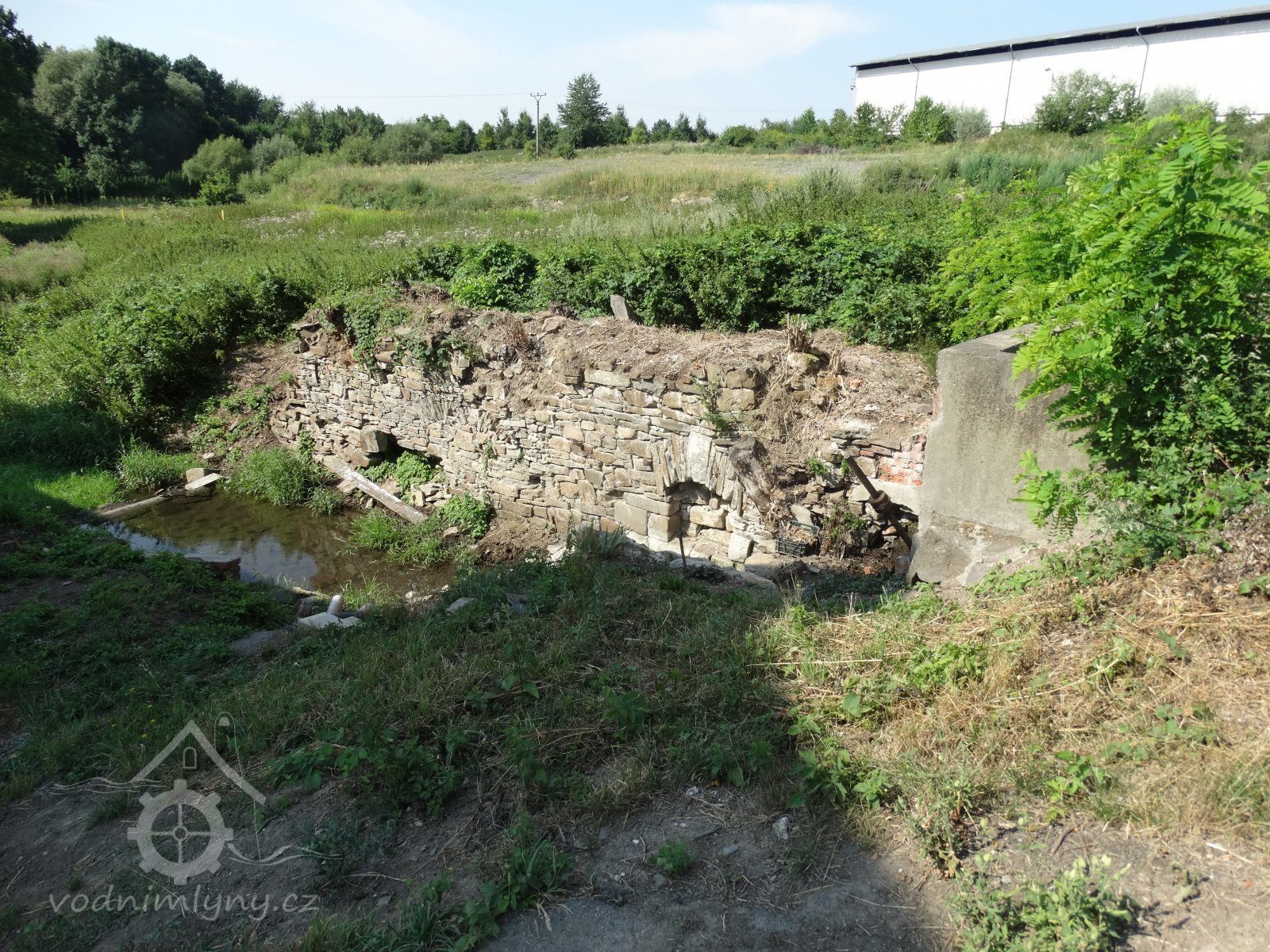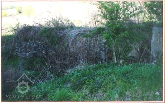 Zachován jen fragment základového zdiva vedle terénní stopy náhonu.