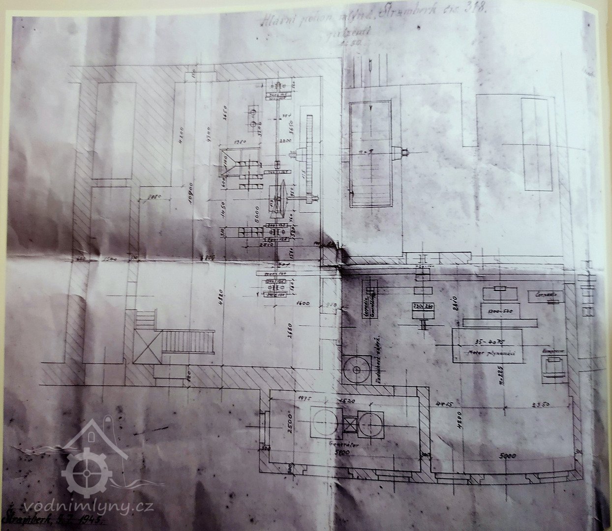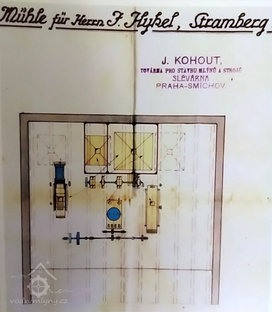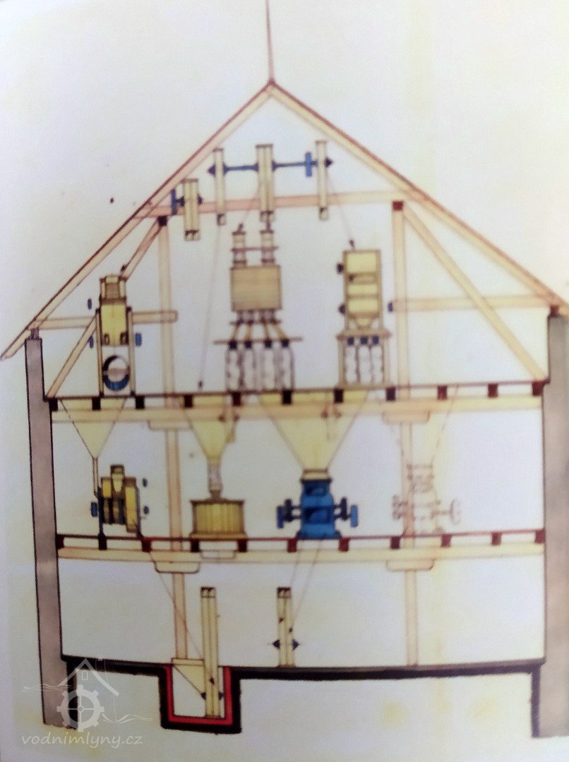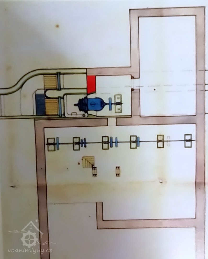 Popis1930 - mlýn má kolo na horní vodu s výkonem 15,75 HP (11,66 kW), hltností 0,43 m3/s a spádem 4,25 m