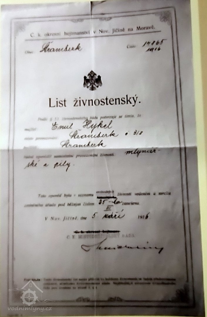 mlýn zdědil dvouletý syn Josef, jako poručníci strýc Josef Hykel a dr. David