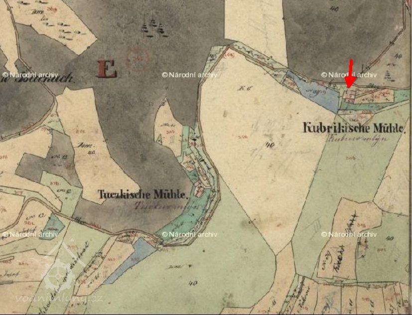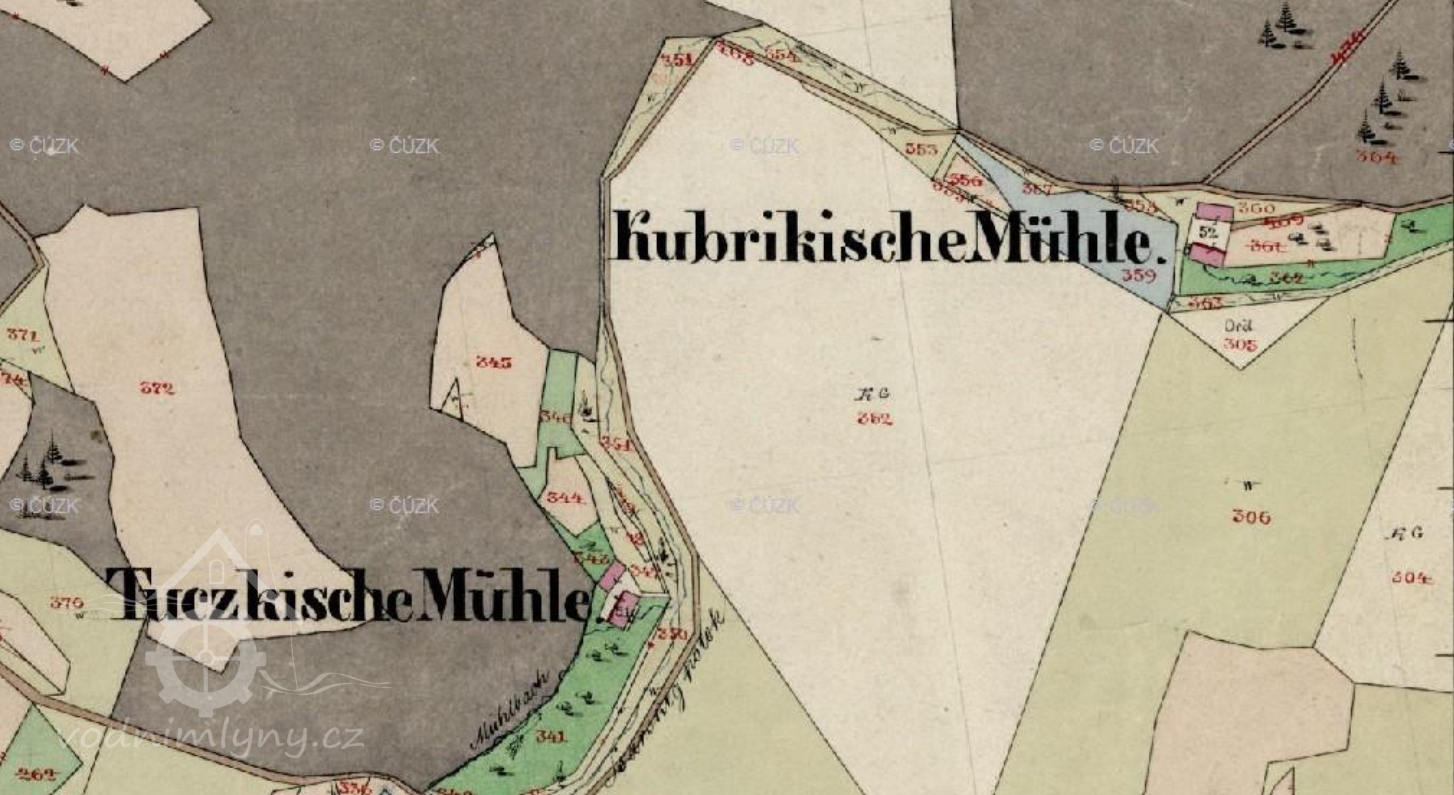 Na Na Indikační skice stabilniho katastru je uveden jako Kubrikische Mühle.