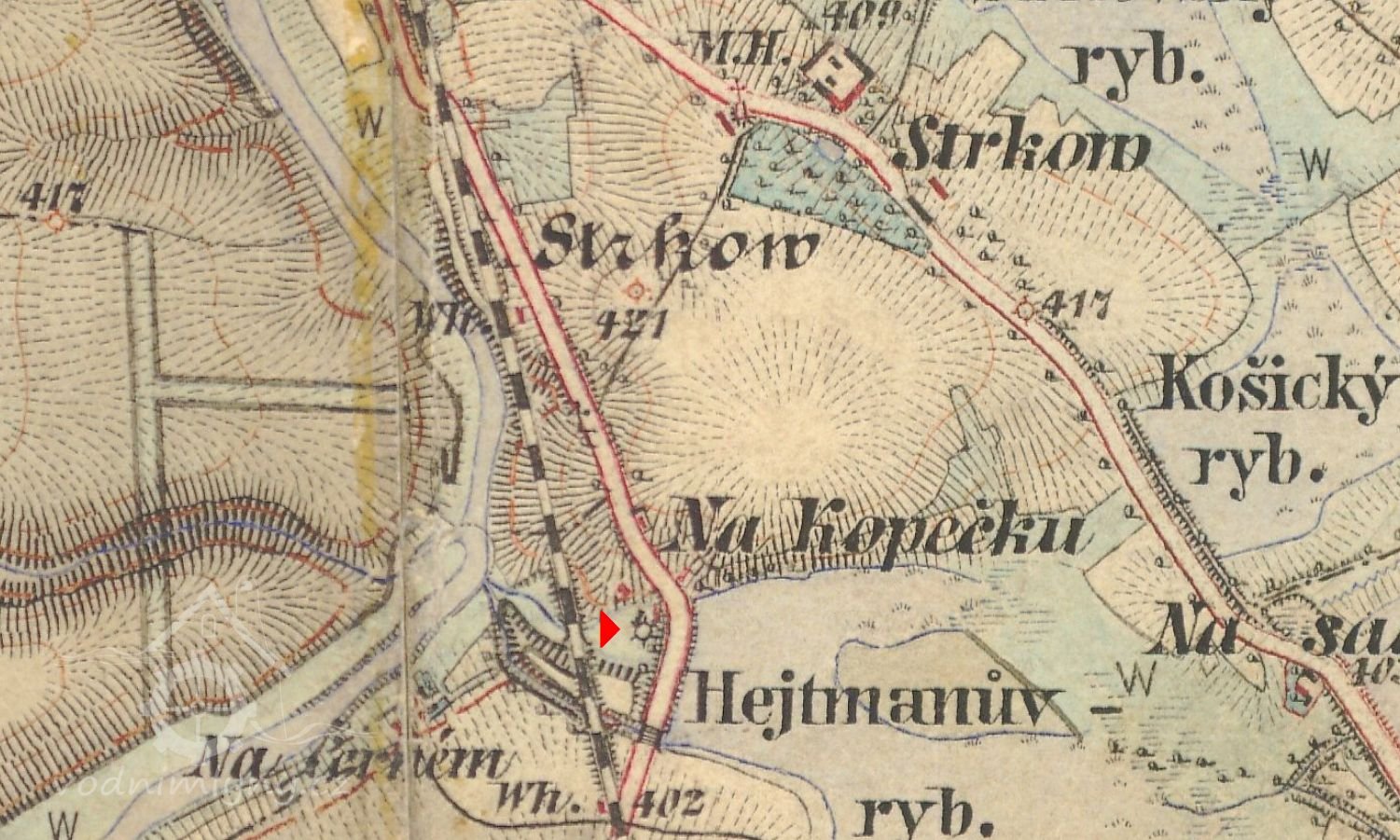 "Pronájem mlýna. Na hraběcím Jan Harrachovském velkostatku Zelečském, pronajme se tak zvaný "Hýtmanský mlýn" nad Planou pod 2 složení i s pozemky k tomu přináležícími ve výměře 11 jiter 497 čtv. s., od 15. října t. r. na 6 roků. - Podmínky nájemní nahlednouti lze u správy velkostatku v Zelči, kdež se nabídnutí do 10. října t. r. přijmou, s přiložením vadium 50 zl. Od správy velkostatku v Zelči (pošta Planá) 20. září 1874."