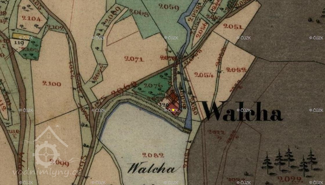PopisV r. 1930 zde byla Francisova turbína, průtok 0,13 m3/s, spád 4 m, výkon 4,5 k.