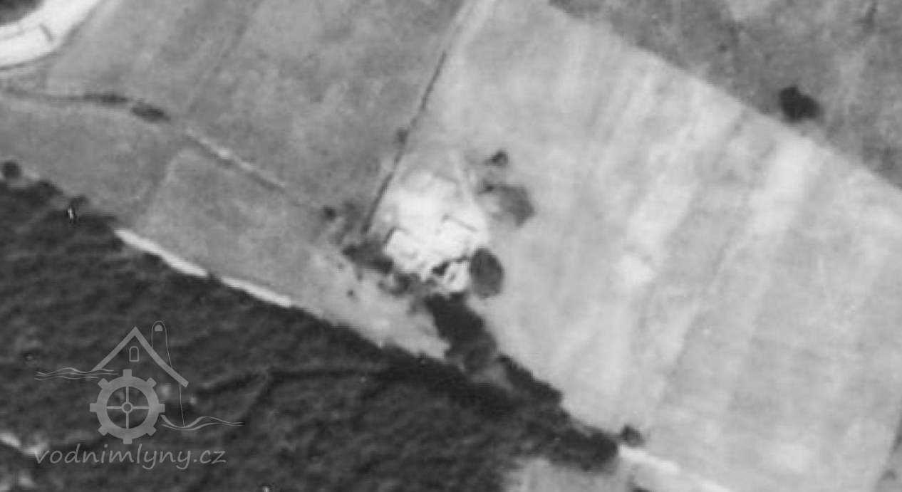 Na leteckém snímku z roku 1948 jsou dosud patrné výrazné zříceniny mlýna.