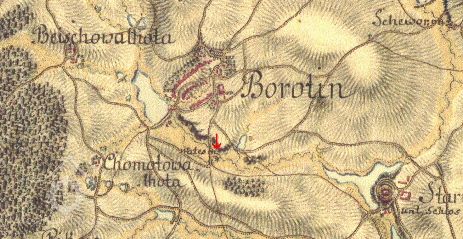 1546 Jan Černčický z Kácova prodal dům panský v Borotíně s polovinou městečka a dvěma mlýny a rybníky Benešovi ze Sendražic