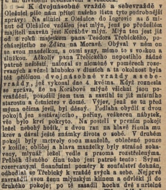 Mlýn vlastnil asi od r. 1870 Teodor Třebický. Ten 4. května 1876 zabil svou manželku, syna a spáchal sebevraždu. (RR).