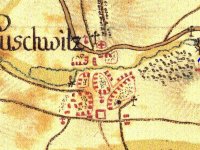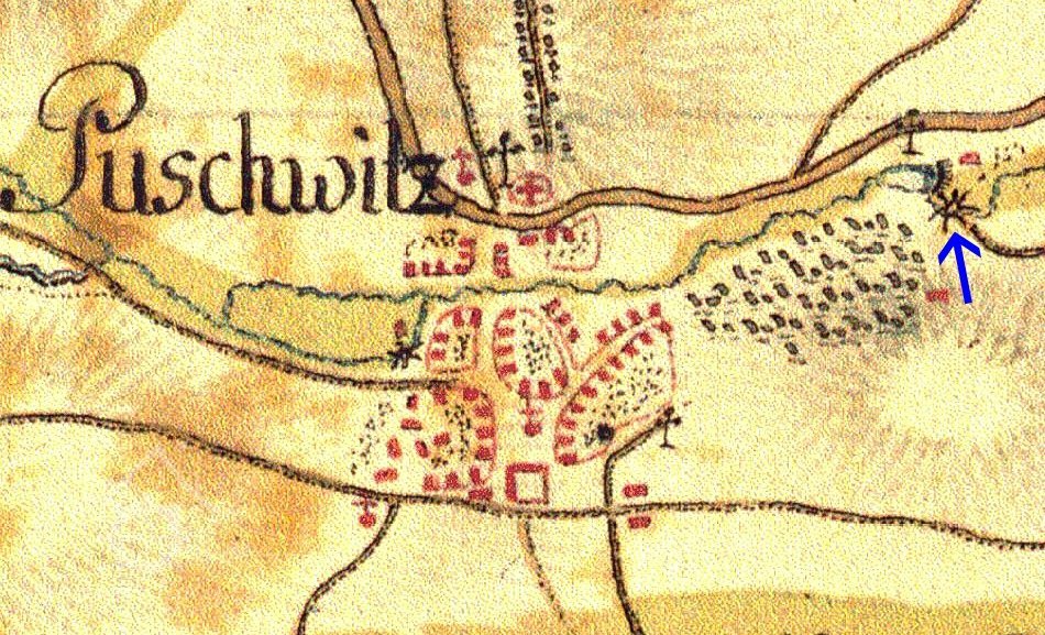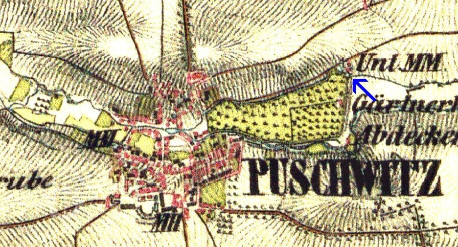Mlýn se nacházel mezi Buškovicemi a gotickou tvrzí v Hlubanech.