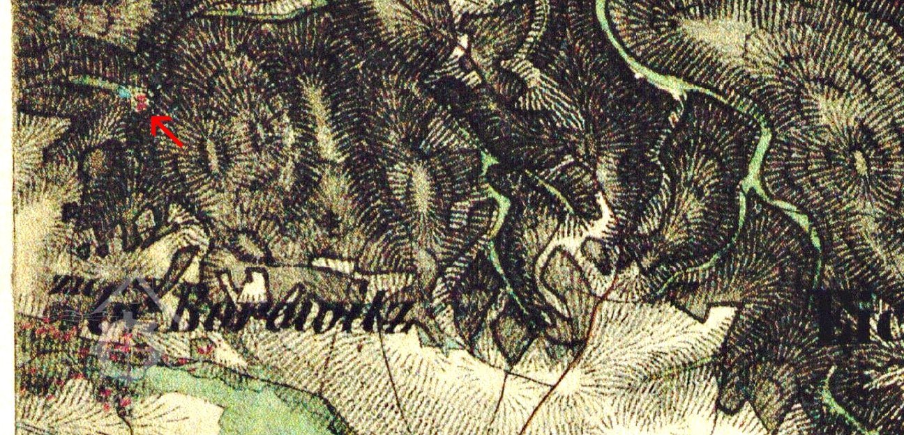Koncem 19. stol. hájovna (hajní Friess, Blaschka) s pilou. (RR)