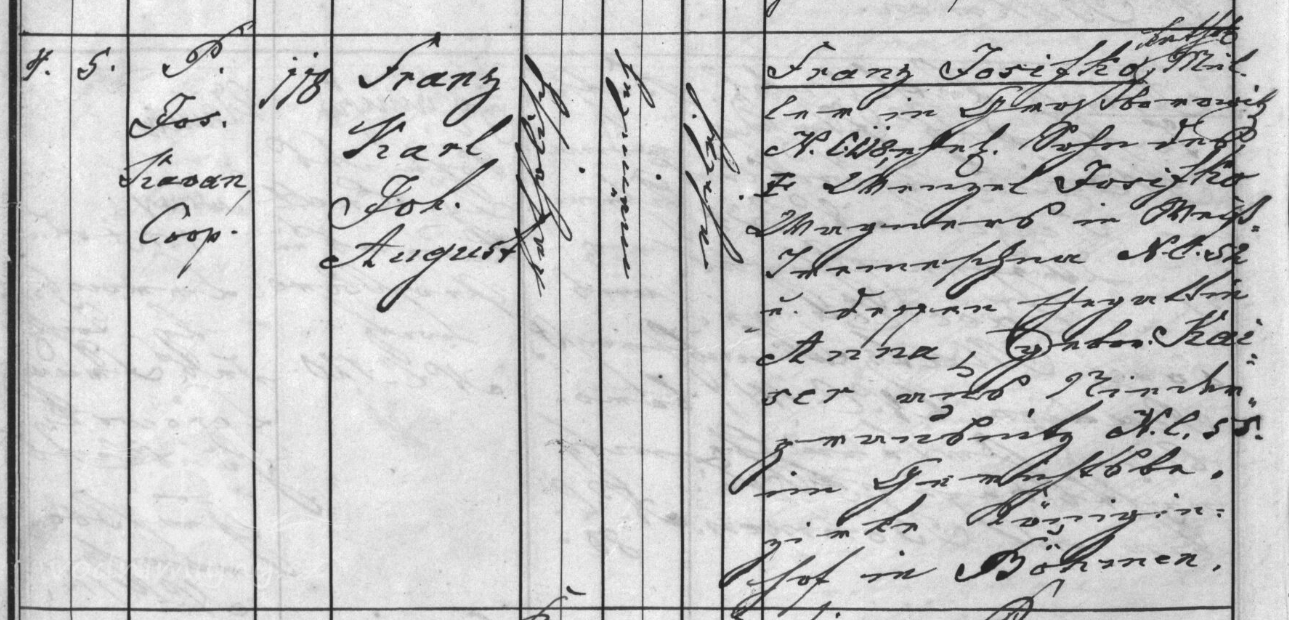 1821 Franz Brožek, je psaný i na skice 1841. (RR)