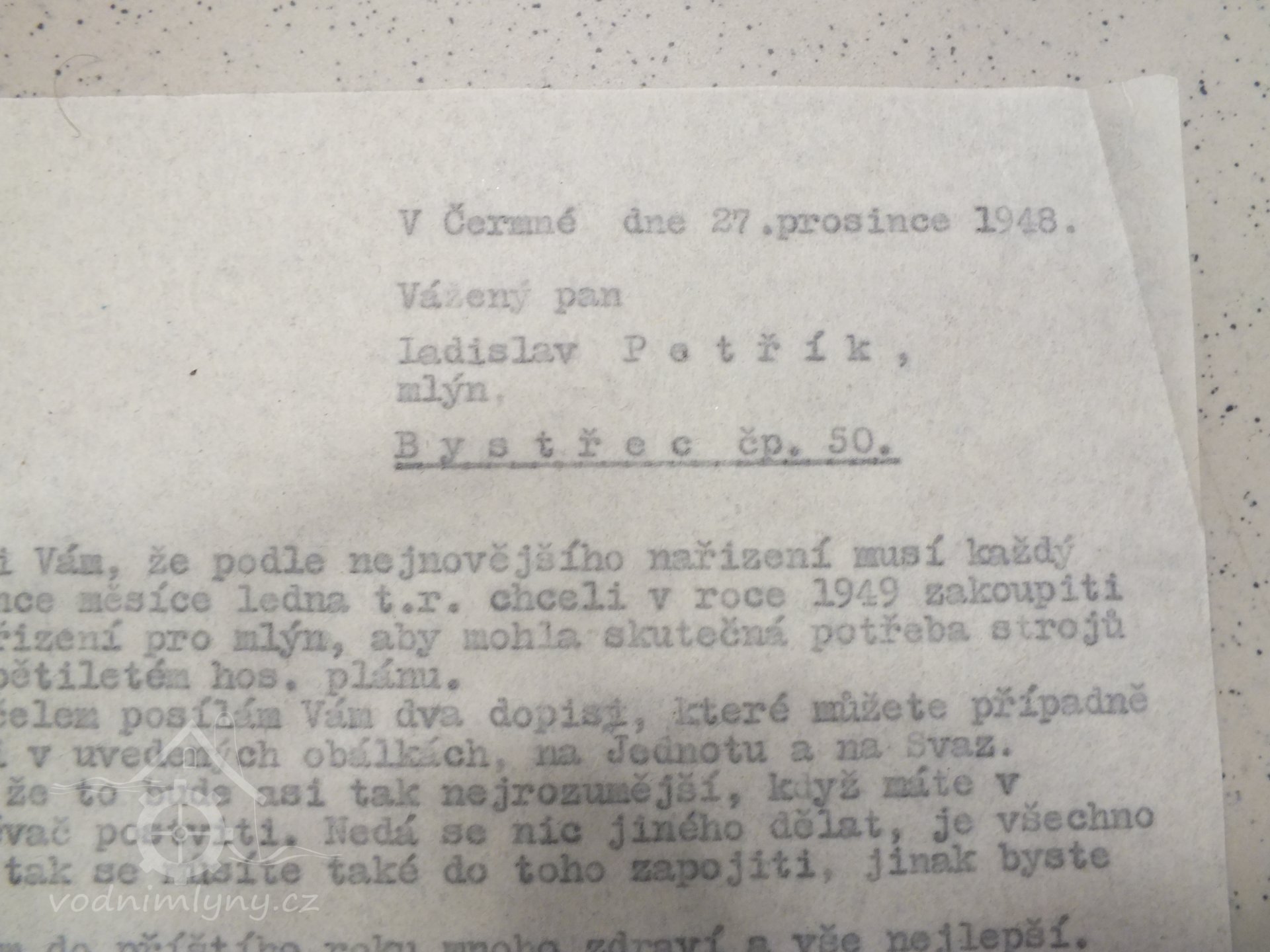 1651 Soupis poddaných podle víry - mlýn Jeho Milosti Knížecí: mlynář Pavel (35 let), manželka Justýna (26), děvka Mandalena (16), všichni poddaní katolíci