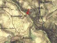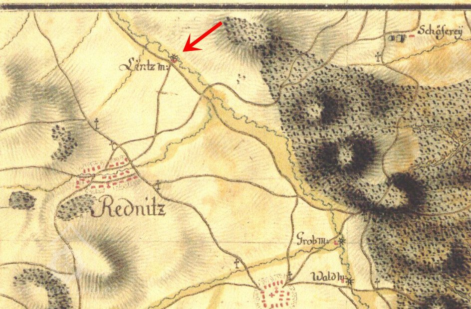 Mlýn se nacházel asi 1 km SV od centra zaniklé obce Řednice.
