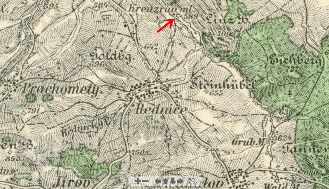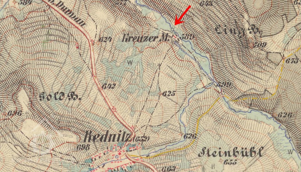 U zříceniny Kreuzerova mlýna se měly ještě v roce 2003 nacházet zbytky kola.