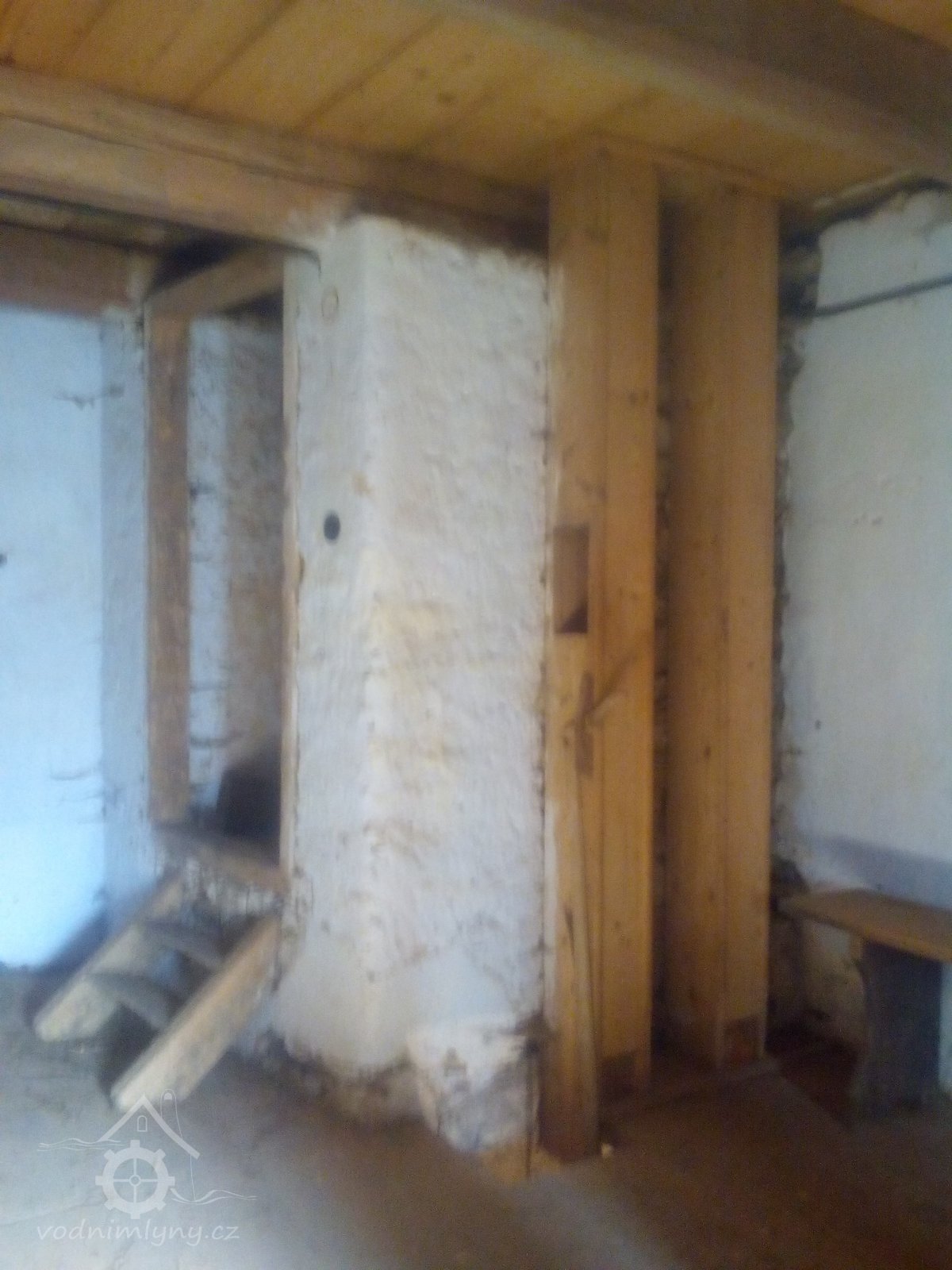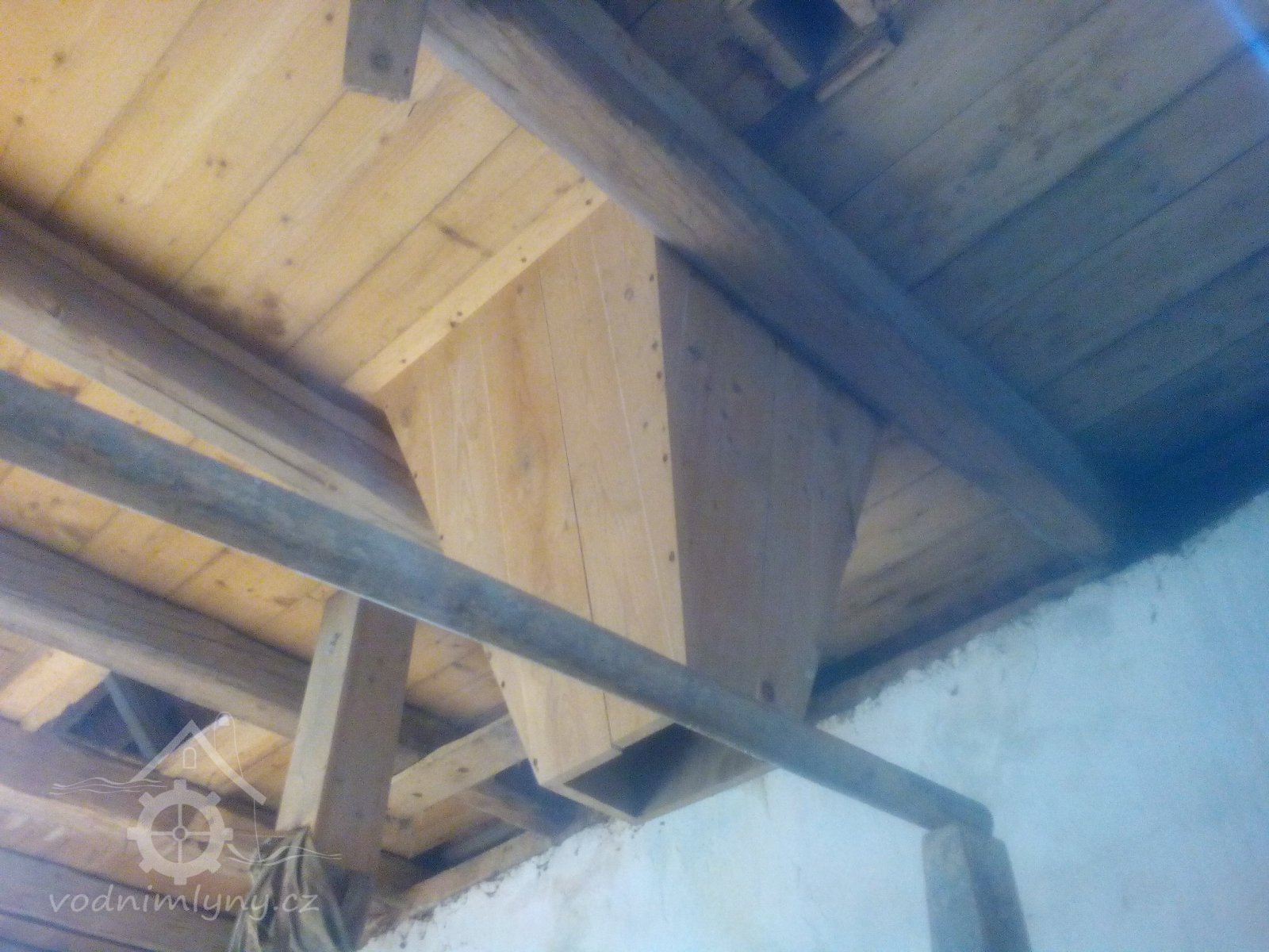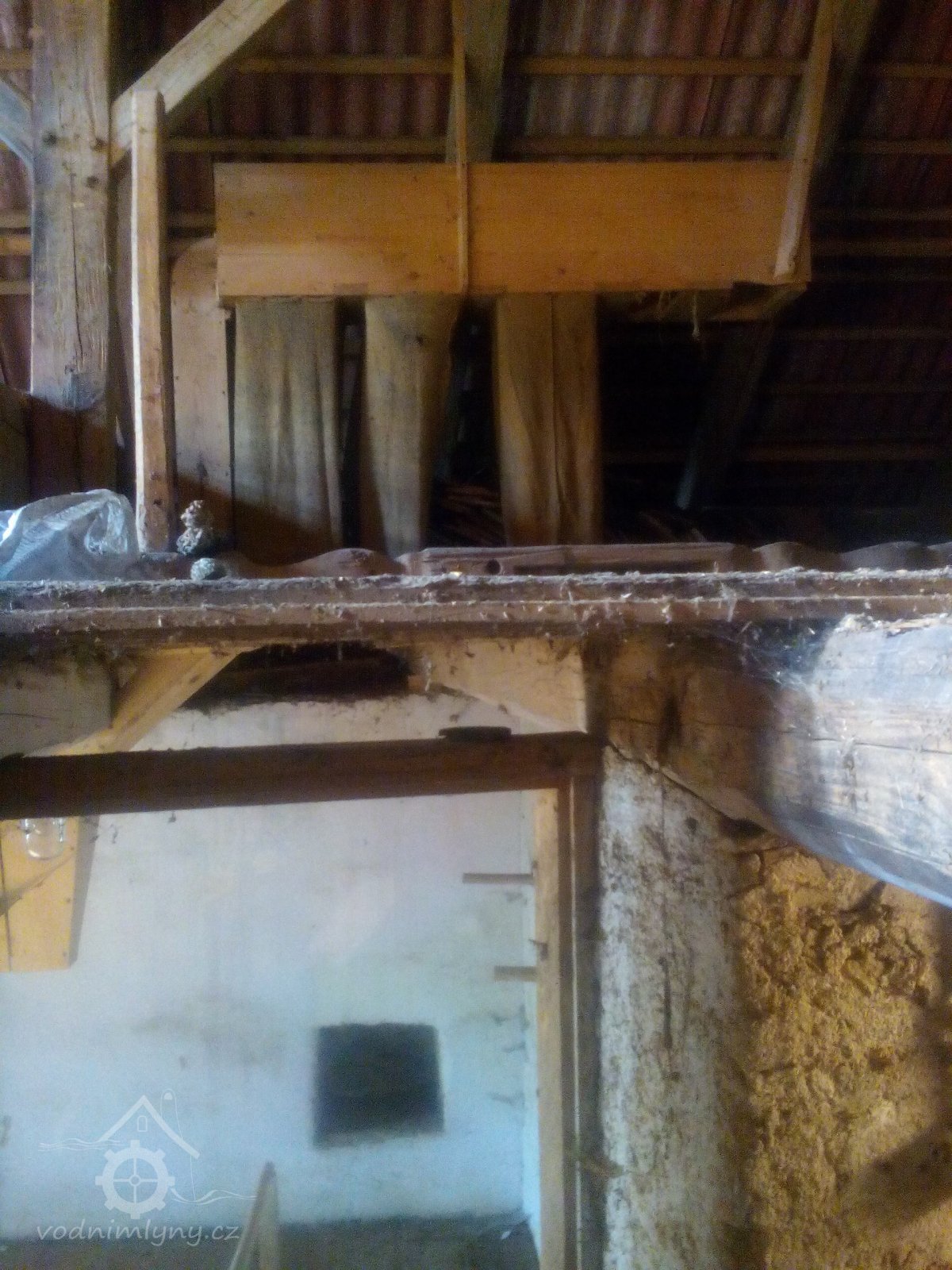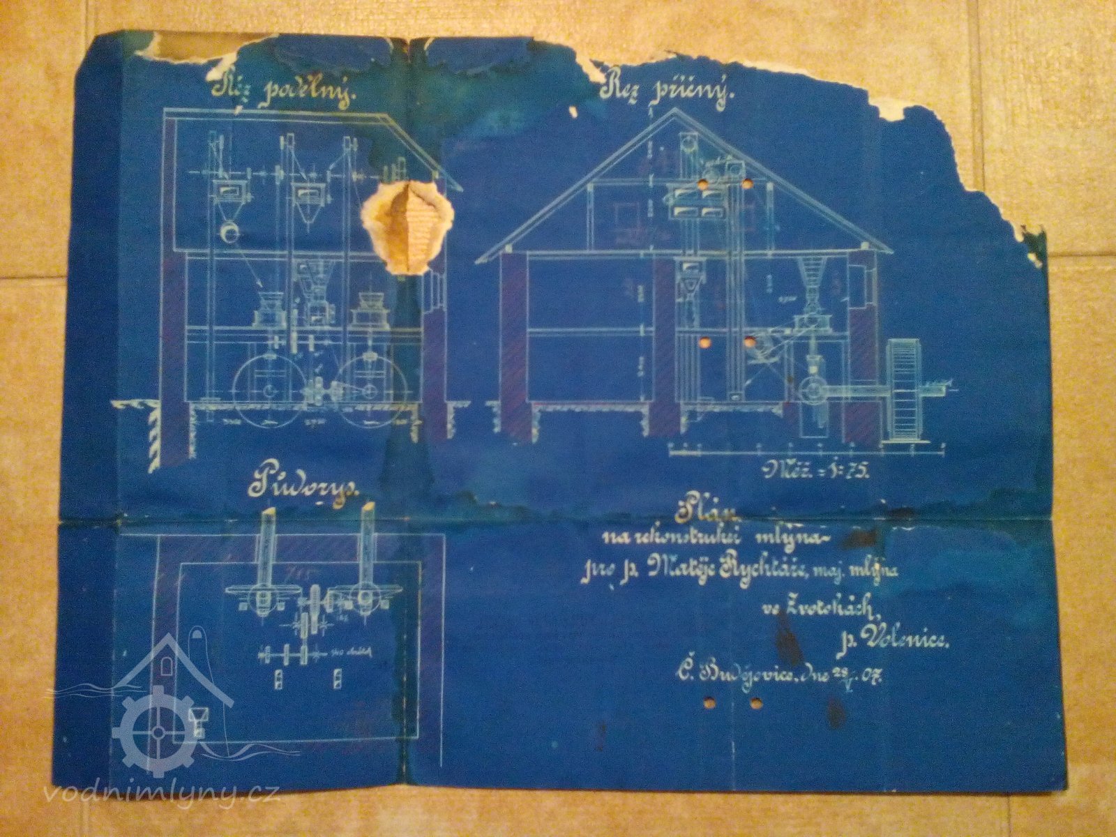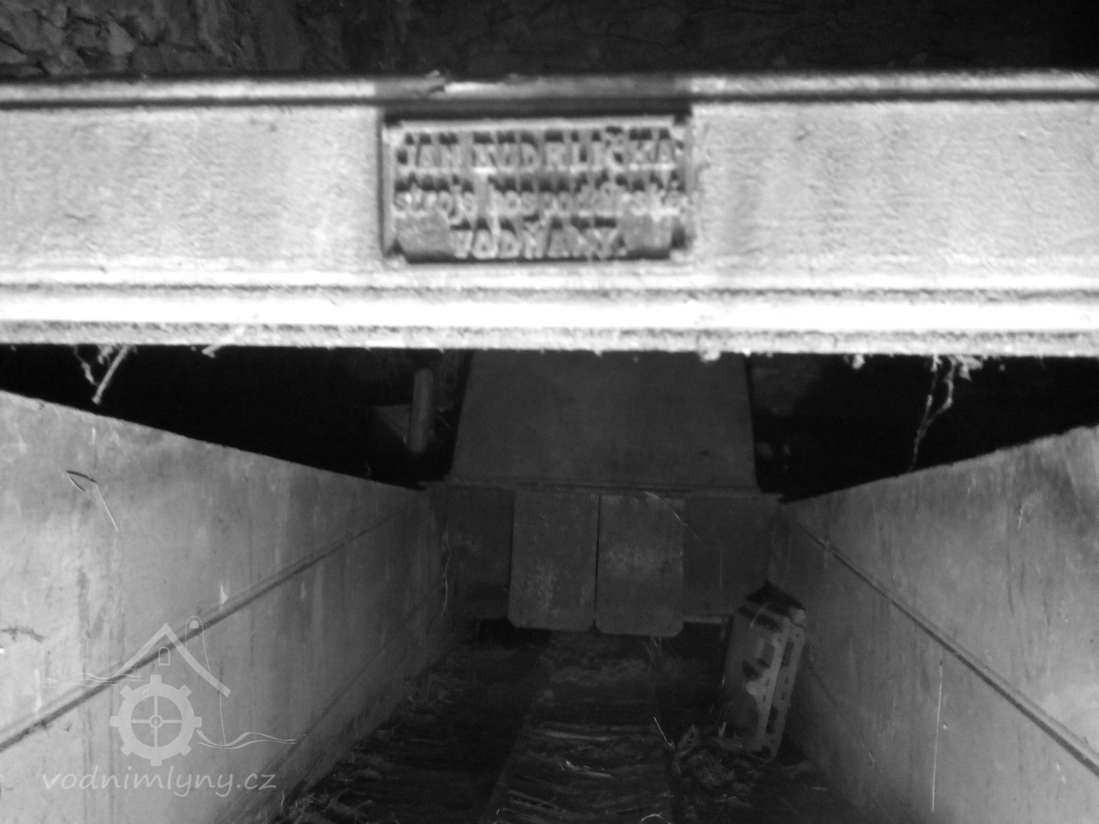 Voda z potoka zdýmá se pevným 210m dlouhým jezem do náhonu, který při svém odbočení z potoka opatřen jest vpouštěcím stavidlem o šířce 0,82m. V mlýnských vantrokách 1,15m širokých dvě stavidla. Pravé: 0,45m široké a 0,33m vysoké. Levé 0,47m široké a 0,33m vysoké.