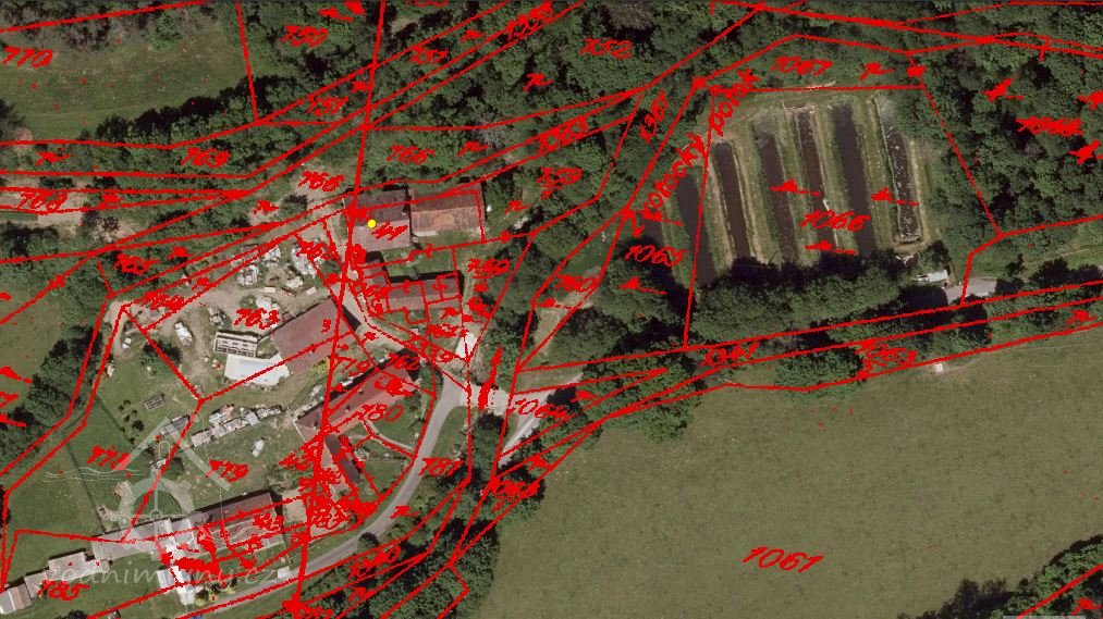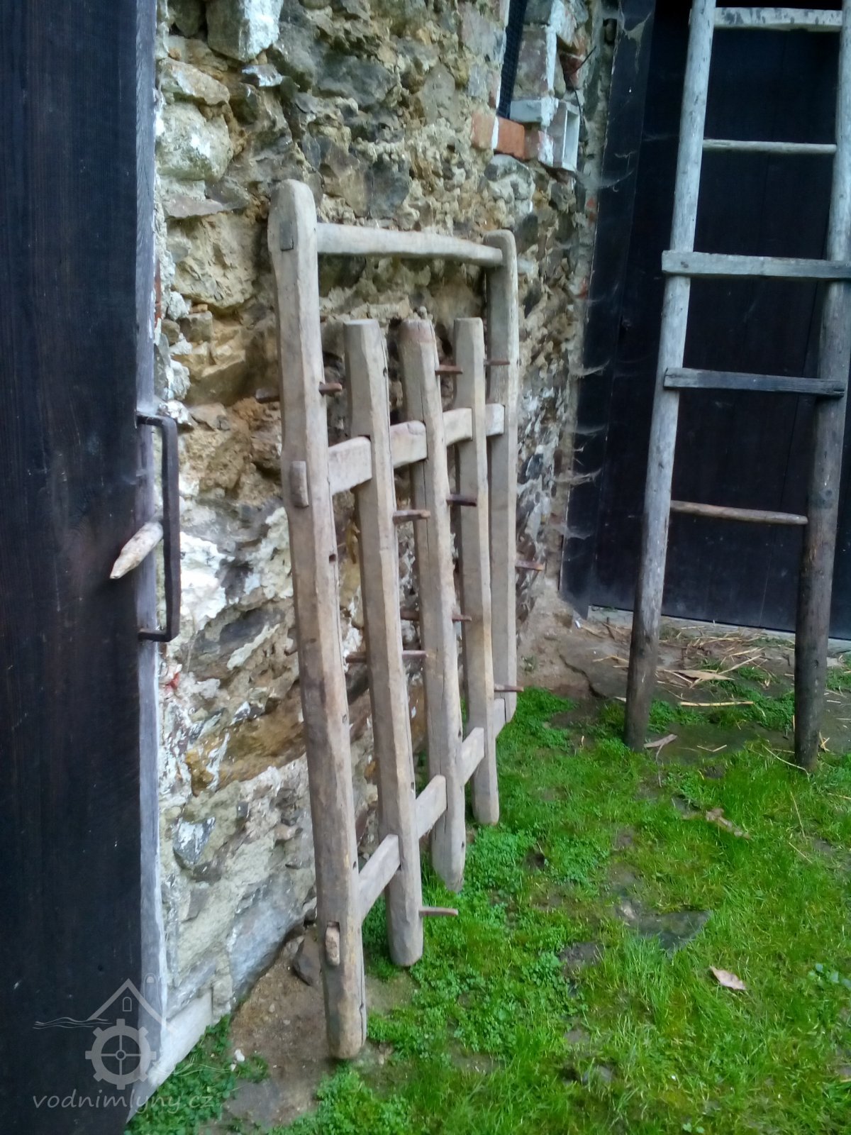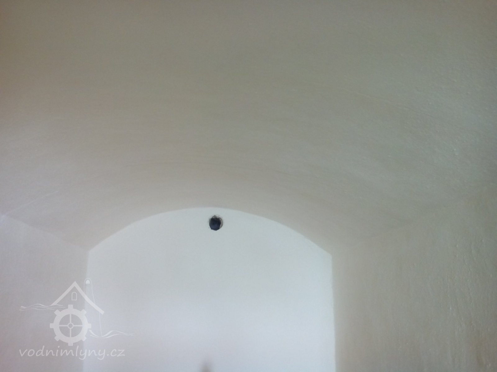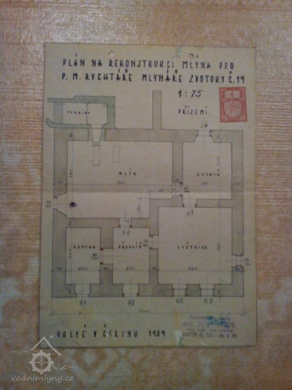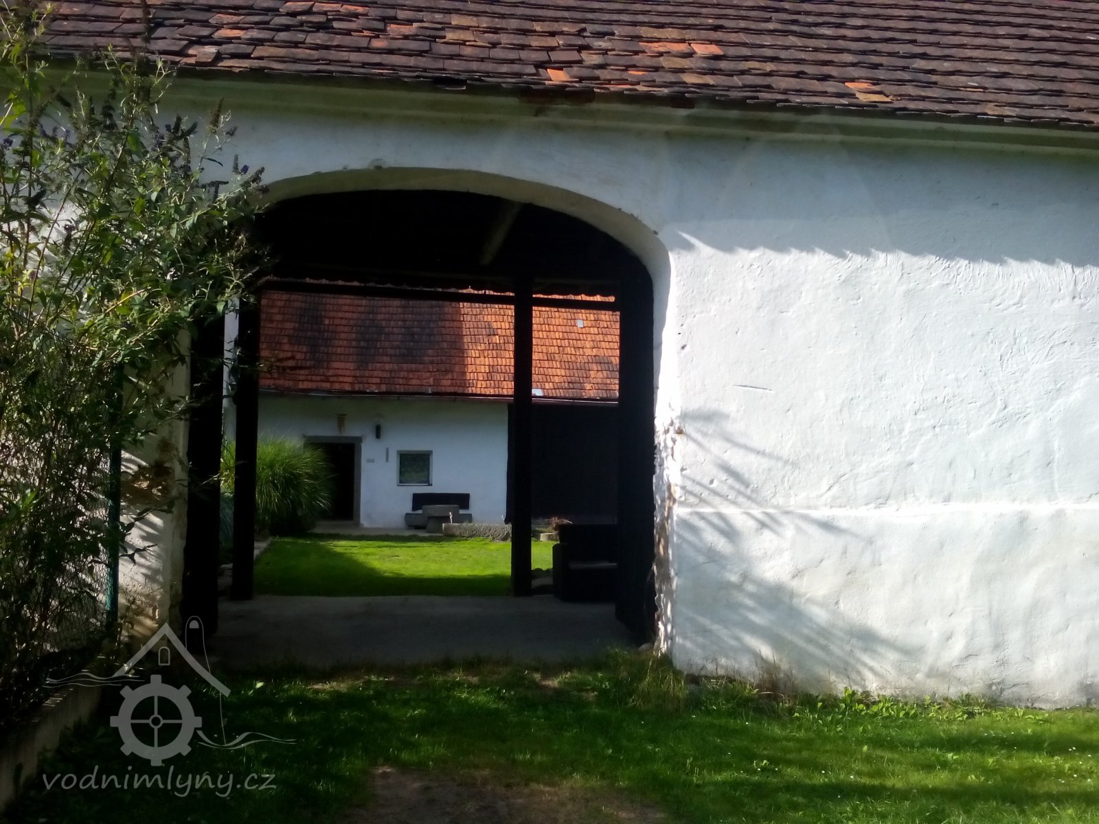 Voda z potoka zdýmá se pevným 210m dlouhým jezem do náhonu, který při svém odbočení z potoka opatřen jest vpouštěcím stavidlem o šířce 0,82m. V mlýnských vantrokách 1,15m širokých dvě stavidla. Pravé: 0,45m široké a 0,33m vysoké. Levé 0,47m široké a 0,33m vysoké.