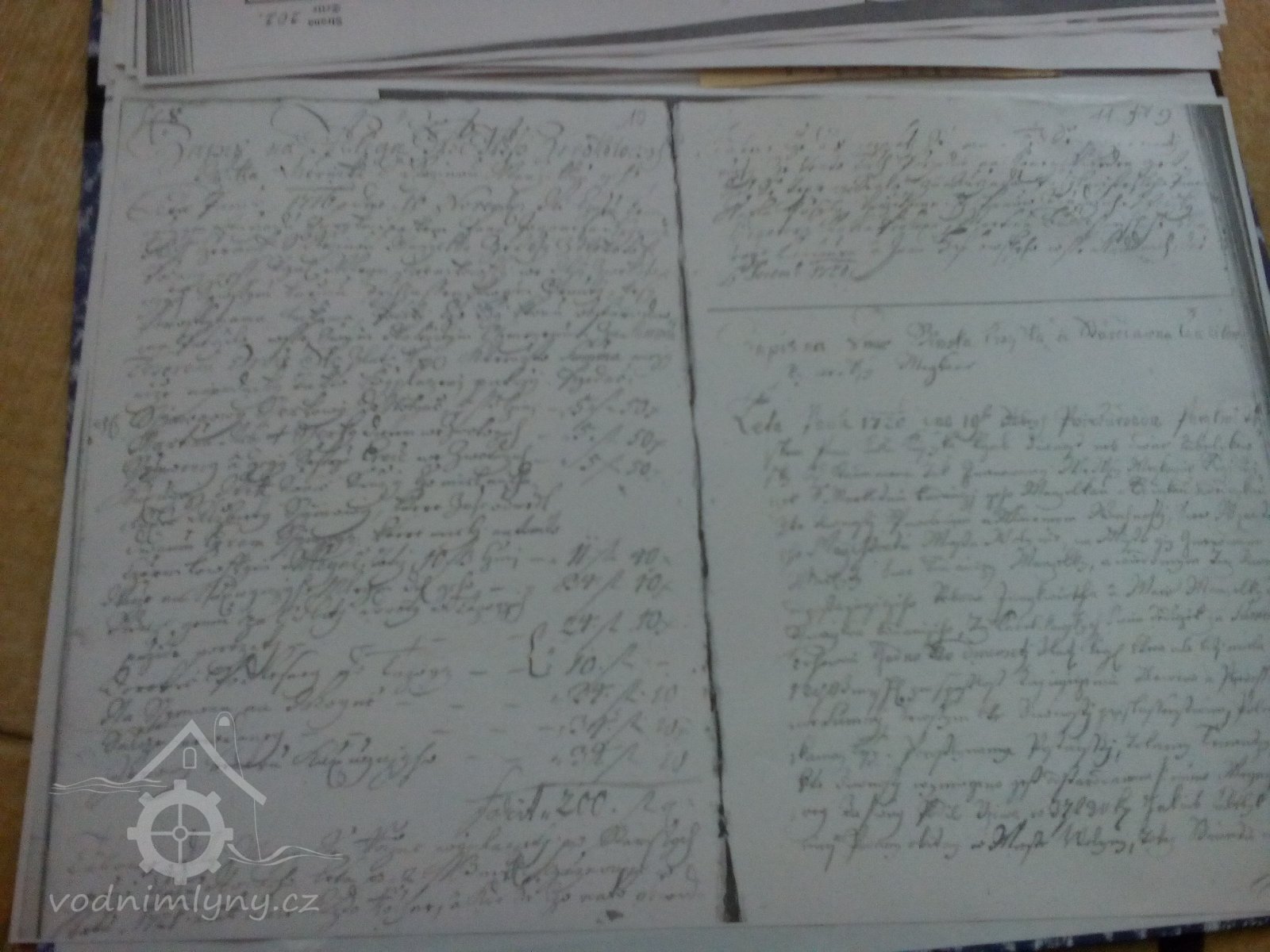AM Volyně: Zápis na mlejn z roku 1716 (zatím nerozluštěný text, psáno staročeštinou).