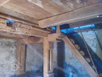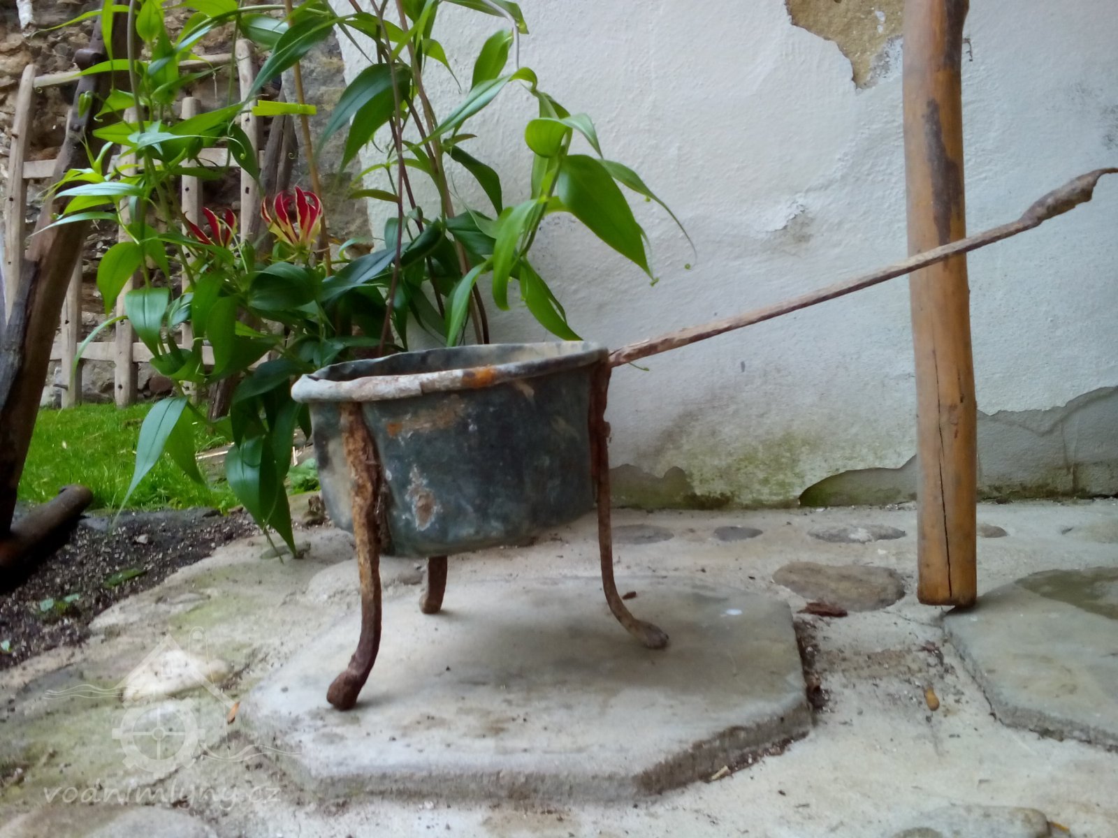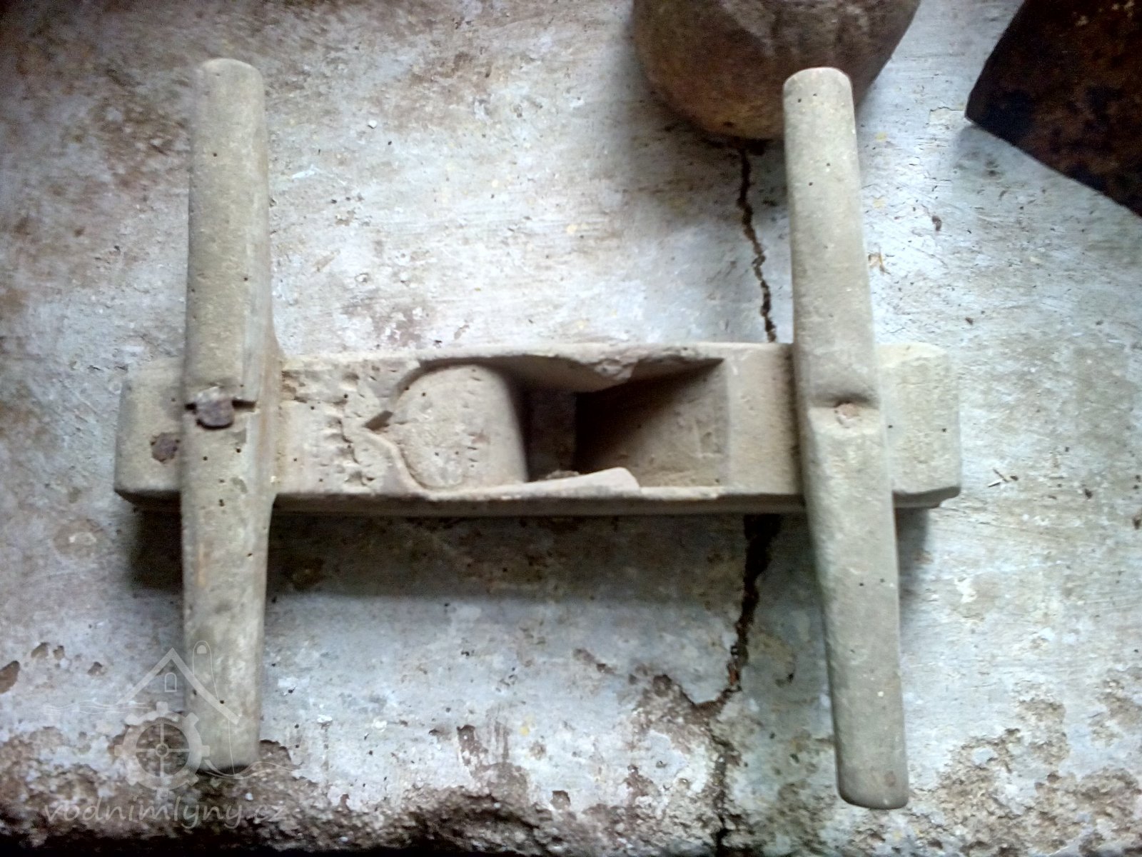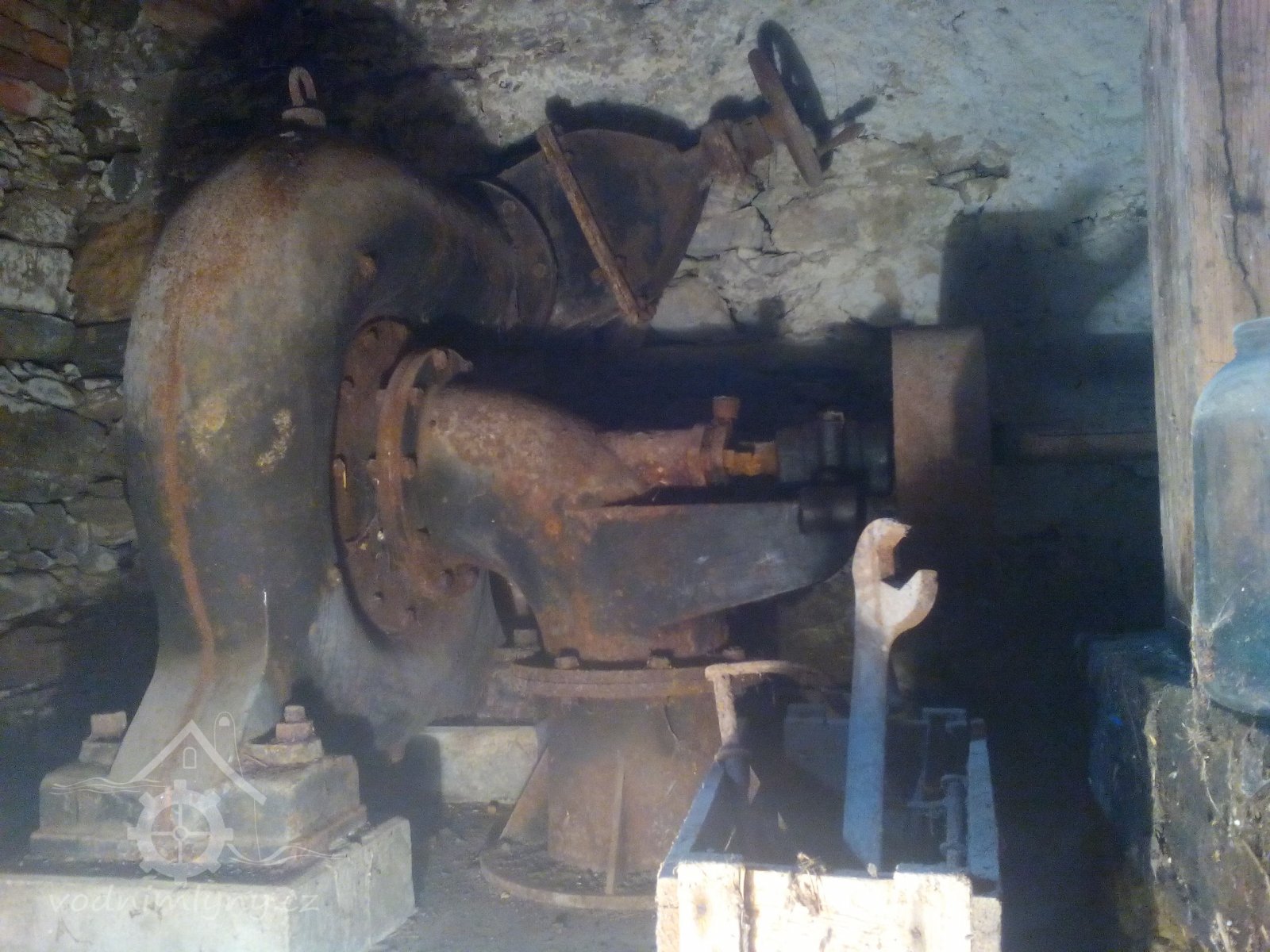 Betonová přístavba na kamenných vantrokách pravděpodobně z 19. stol za účelem vytvoření turbínové kašny.